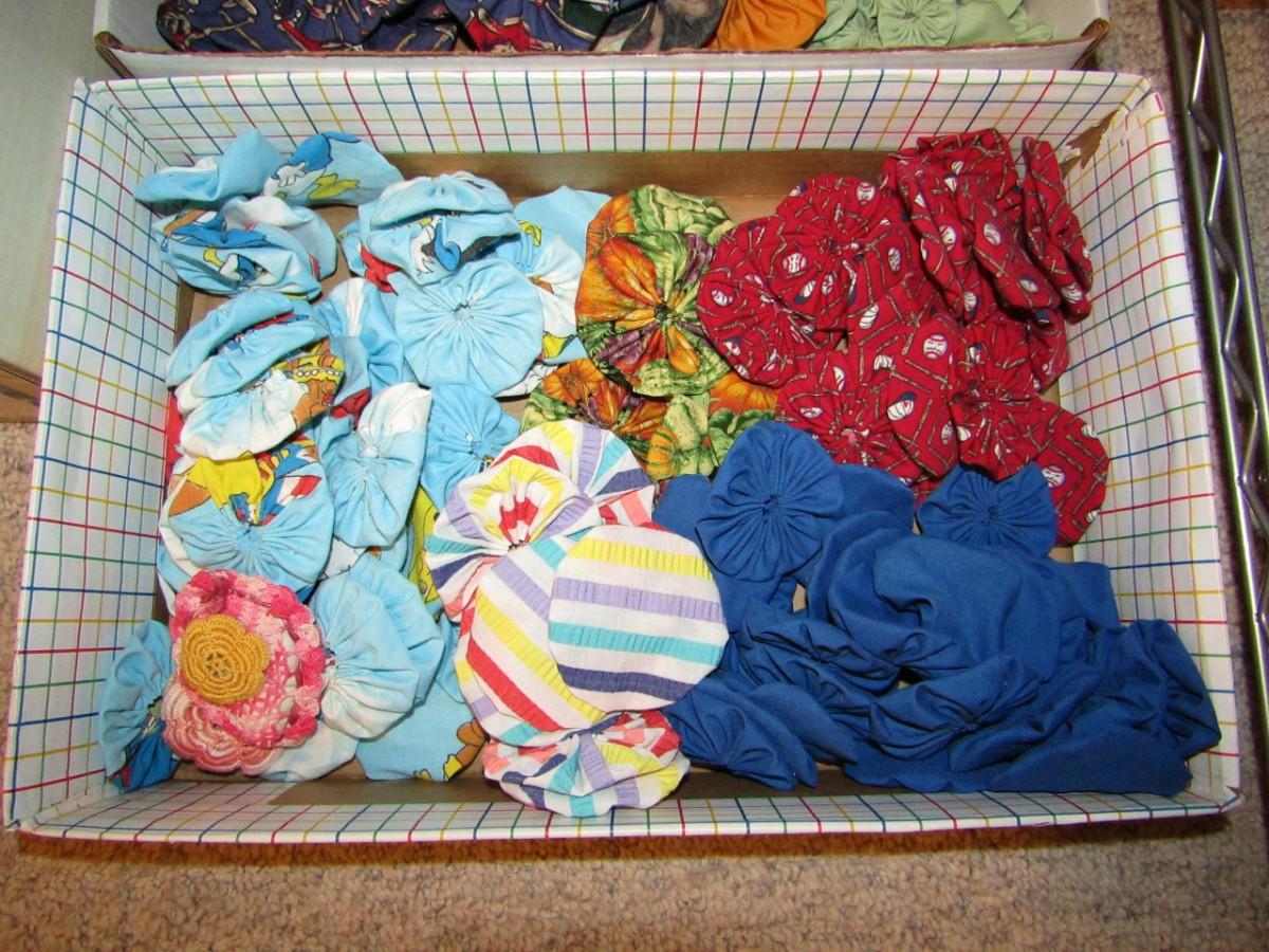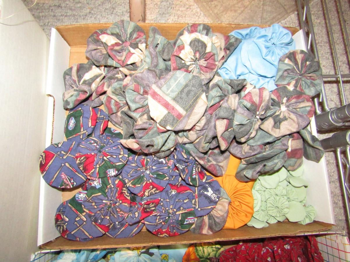 MANY TUCKED/GATHERED CIRCLES TO BE USED IN A QUILT OR THROW PILLOW