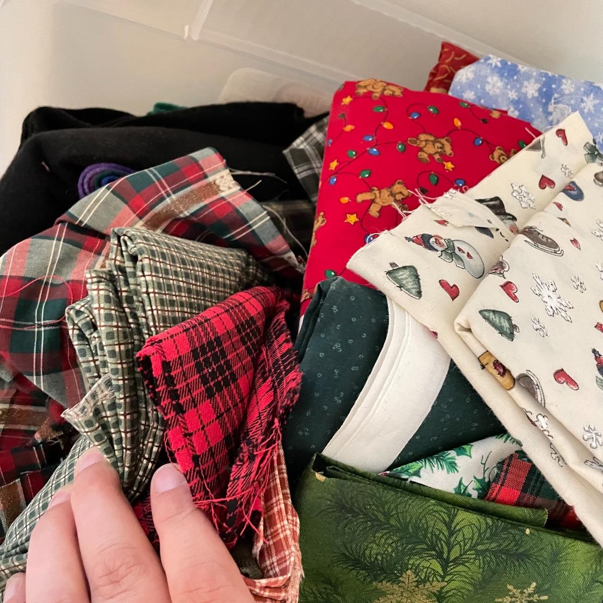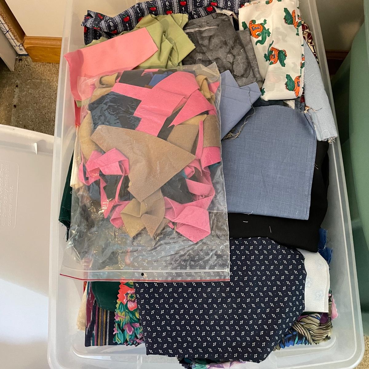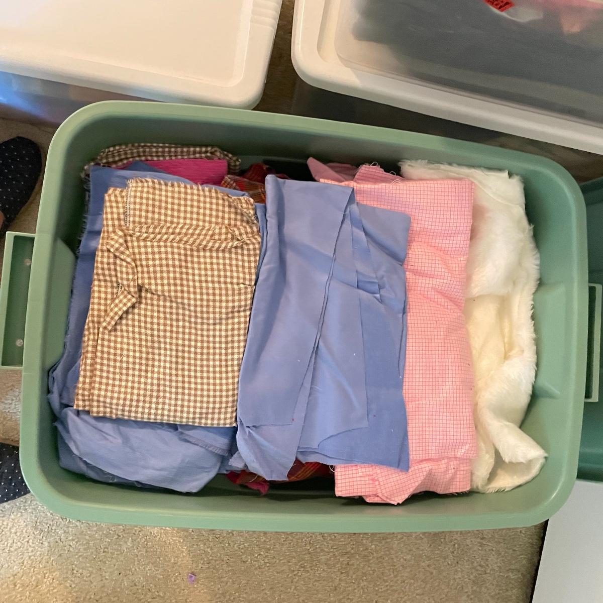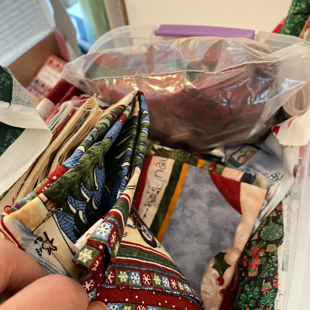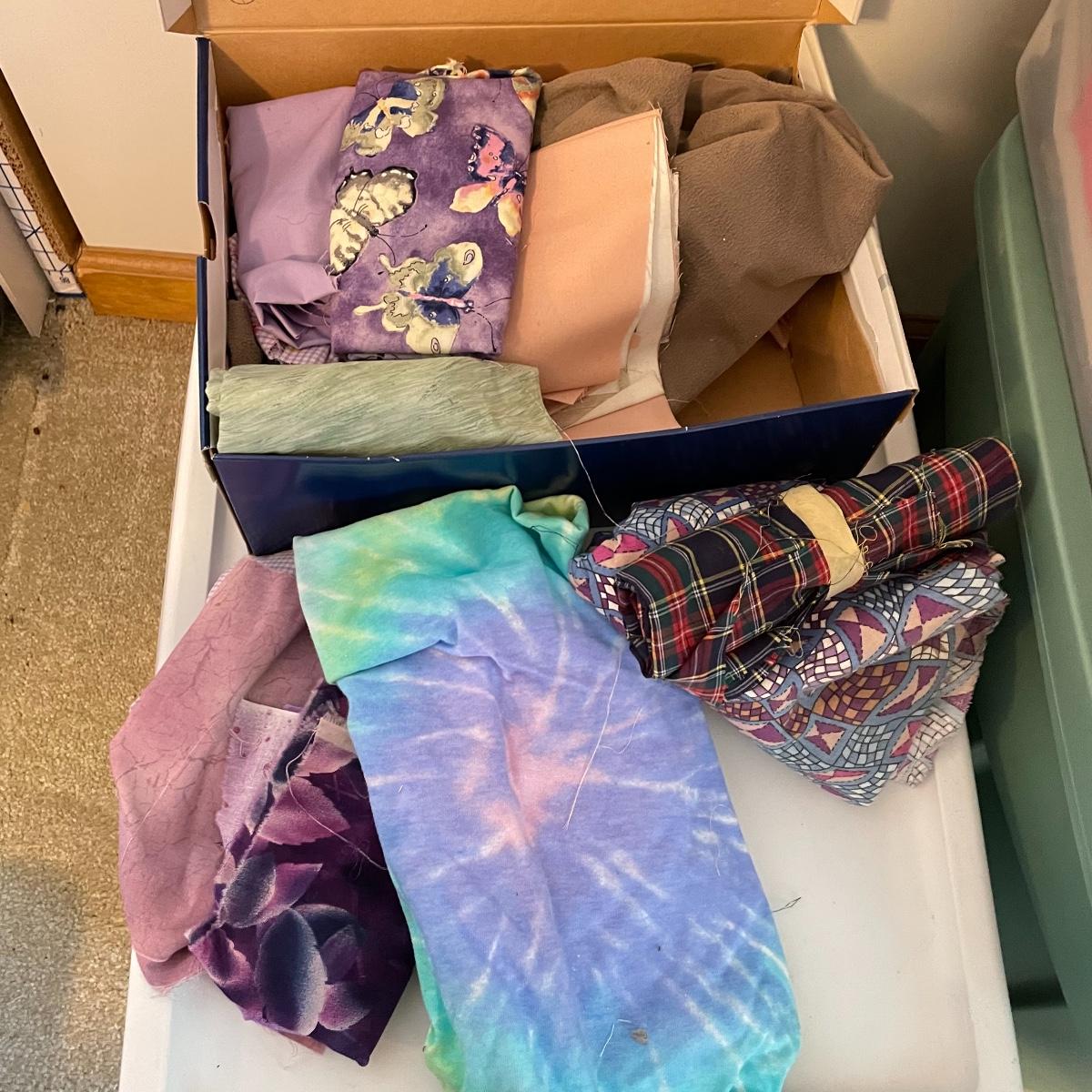 Four 63 L Sterilite bins plus Rubbermaid 68 L and more smaller bins full of fabric! Fabric varies widely with holiday prints, flowers, plaids, faux furs and so much more. See images. Local pick up only.