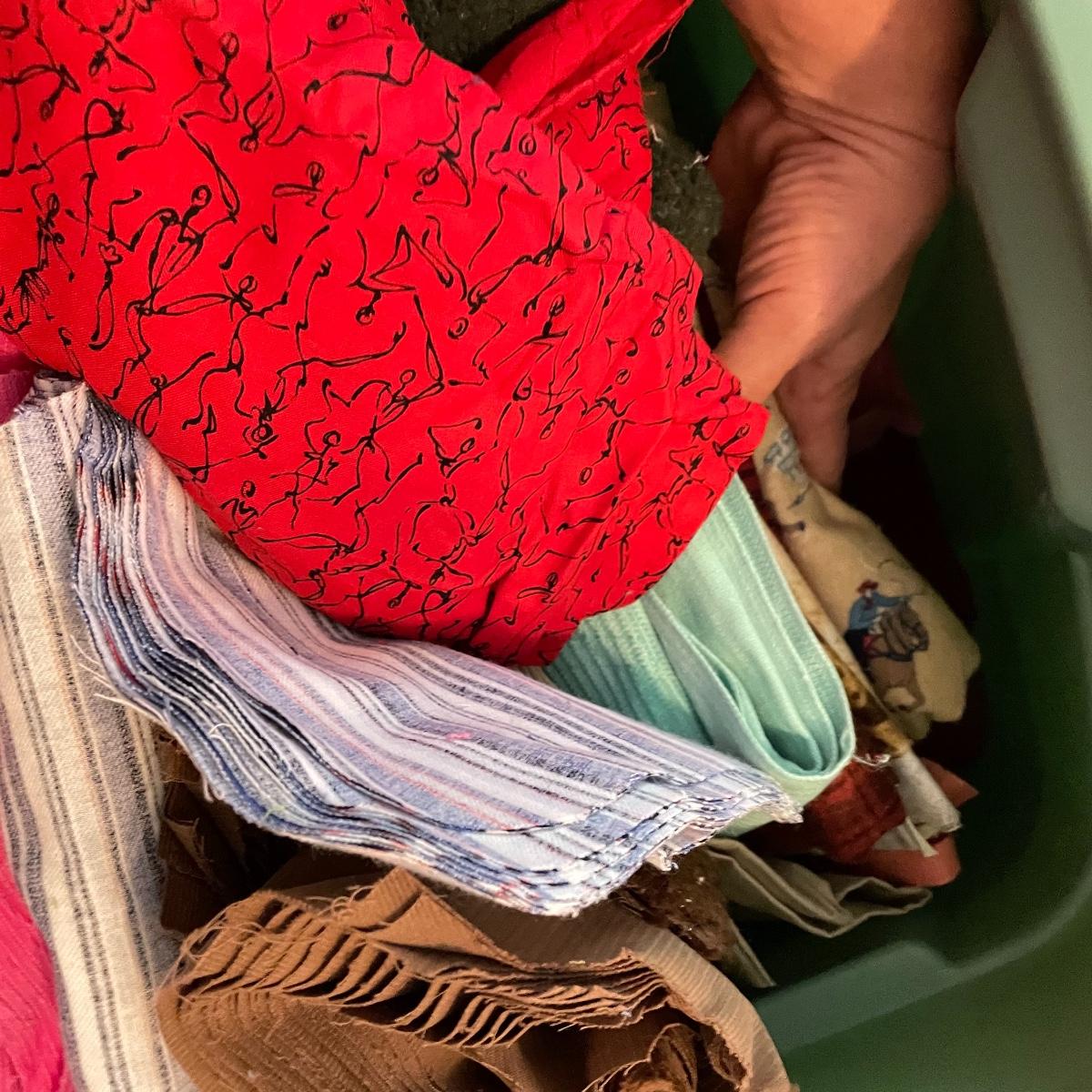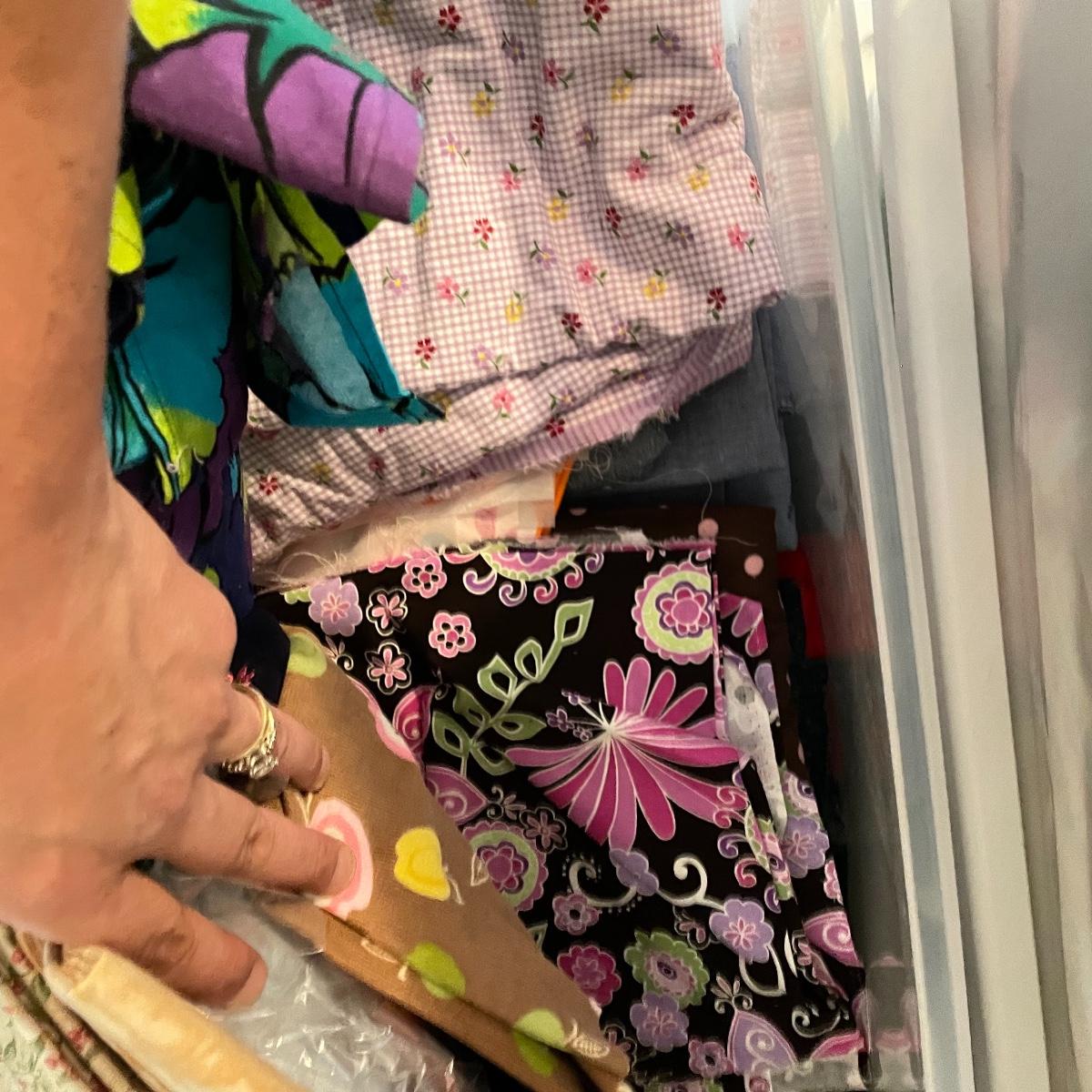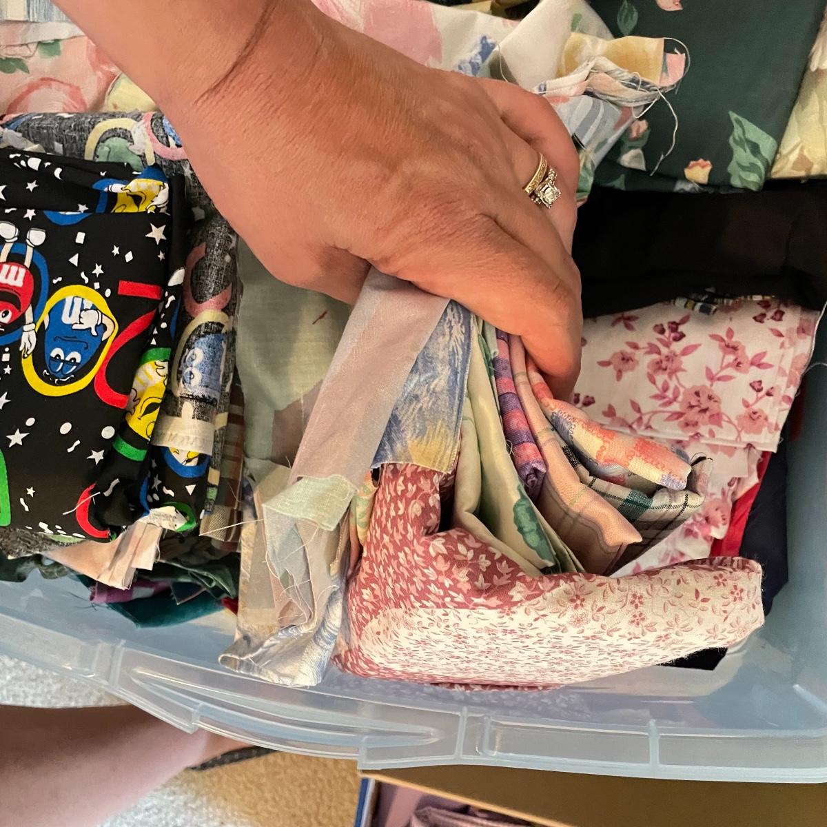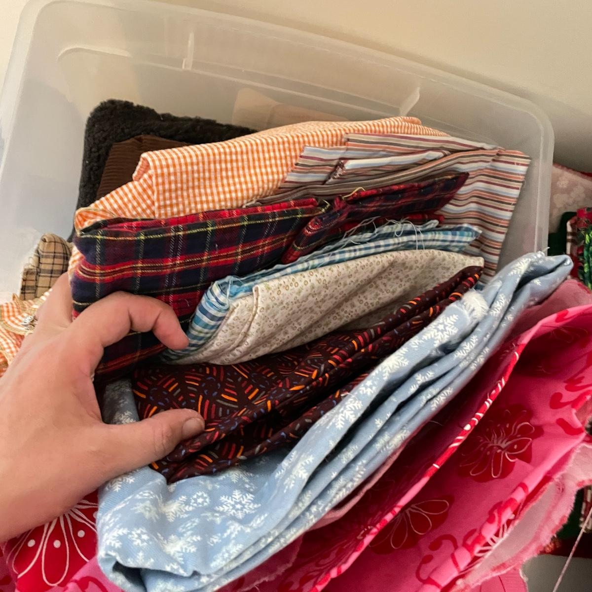 Four 63 L Sterilite bins plus Rubbermaid 68 L and more smaller bins full of fabric! Fabric varies widely with holiday prints, flowers, plaids, faux furs and so much more. See images. Local pick up only.