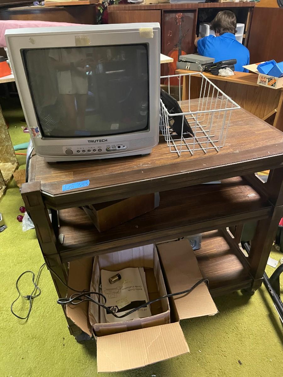 lot 333- rolling cart, tru tech tv