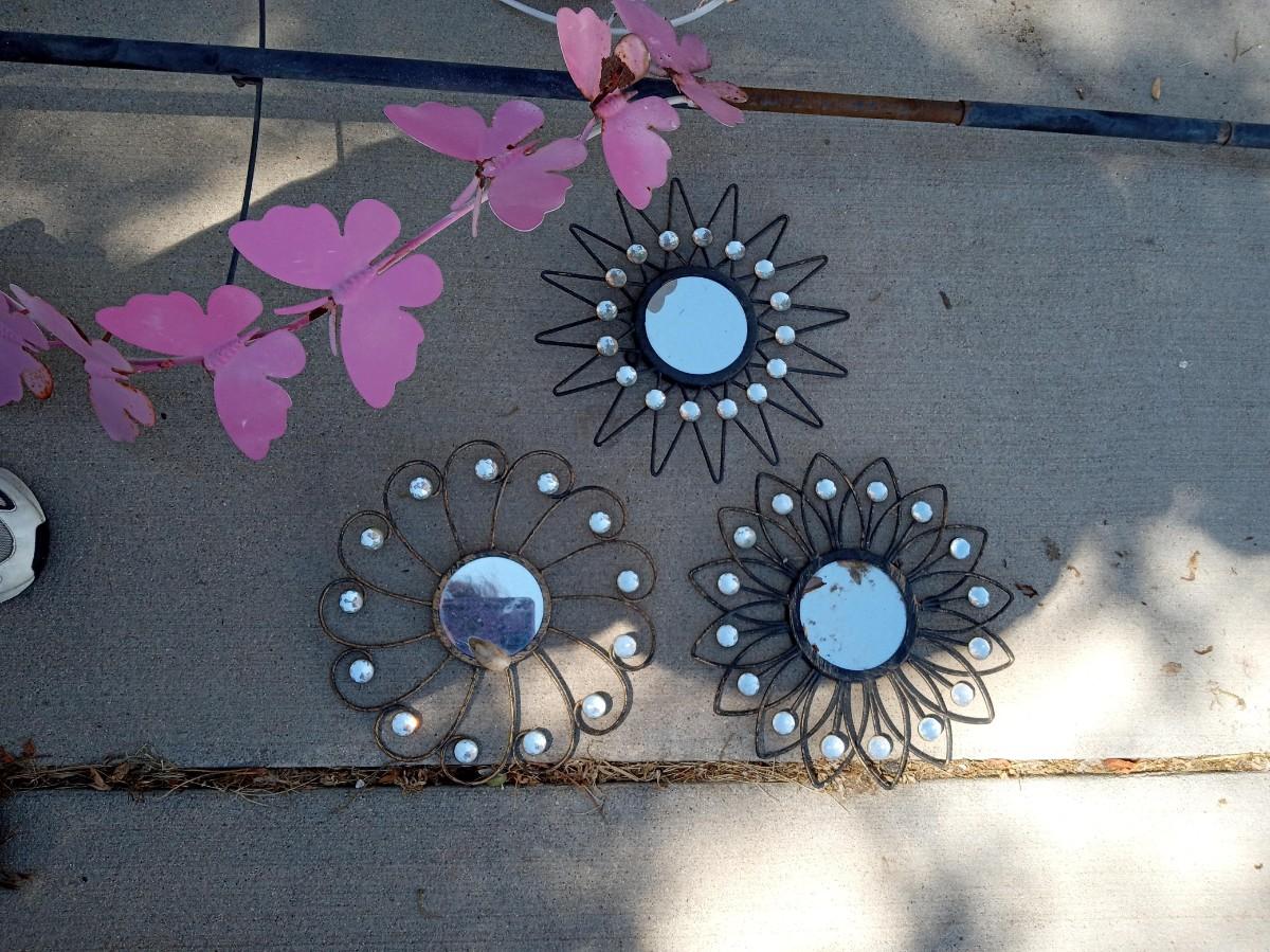 LOT 333 STAKED TWIRLING BUTTERFLIES AND MIRRORED FLOWERS (OB)