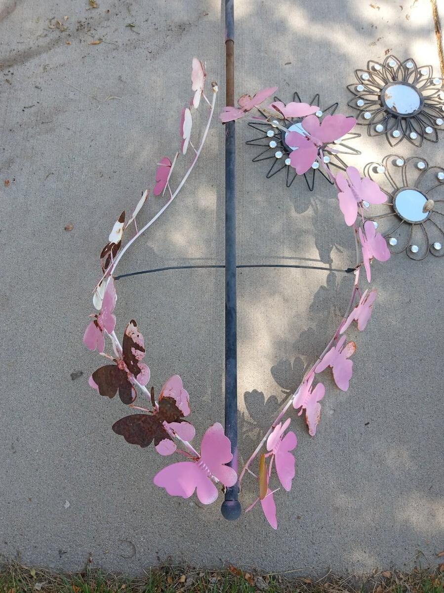 THE METAL BUTTERFLIES NEED A NEW COAT OF PAINT AND THE STAKE BENT ON THE END WHEN REMOVING IT FROM THE GROUND (SEE PIC)
