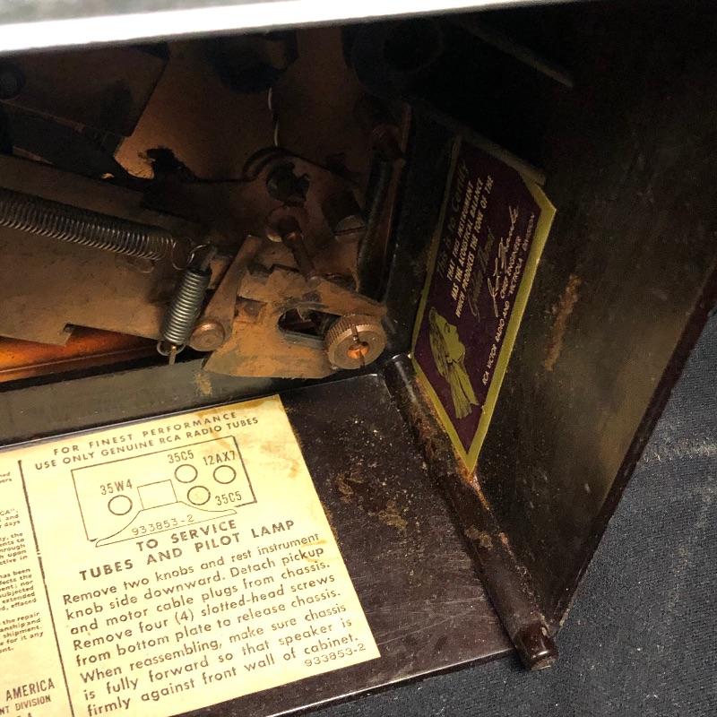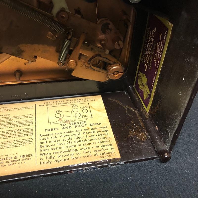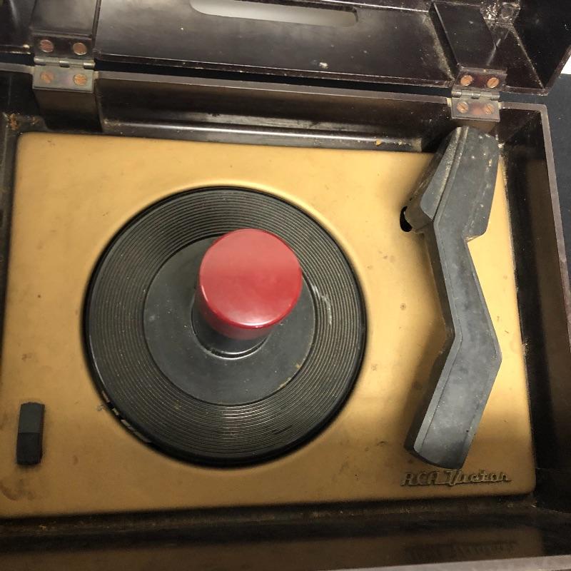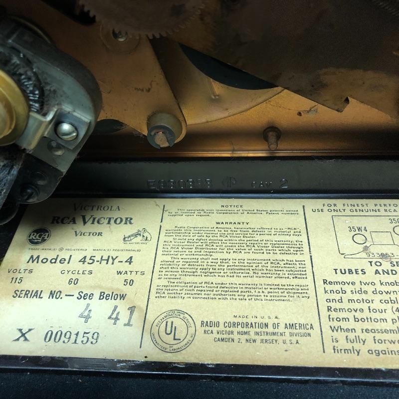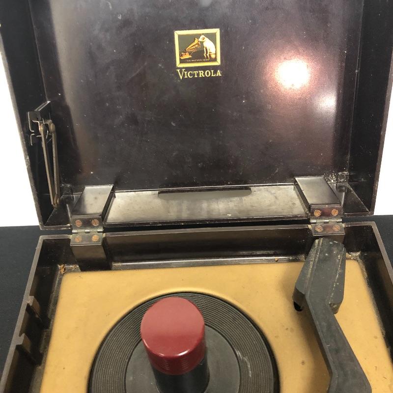 This lot includes three Victrola RCA Victor 45 record players. The model 45-EY-4 has sound when plugged in yet the turntable did not spin. The 45-HY-4 model with prior mail tape has sound when plugged in and its’ turntable did not turn. The last unit 45-HY-4 hums when plugged in and its’ turntable did not turn.