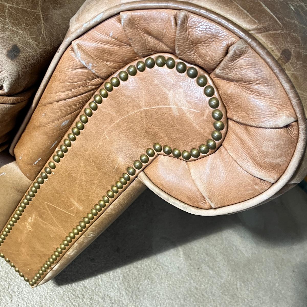 Lot 334 Leather arm chair brown, faded to tan