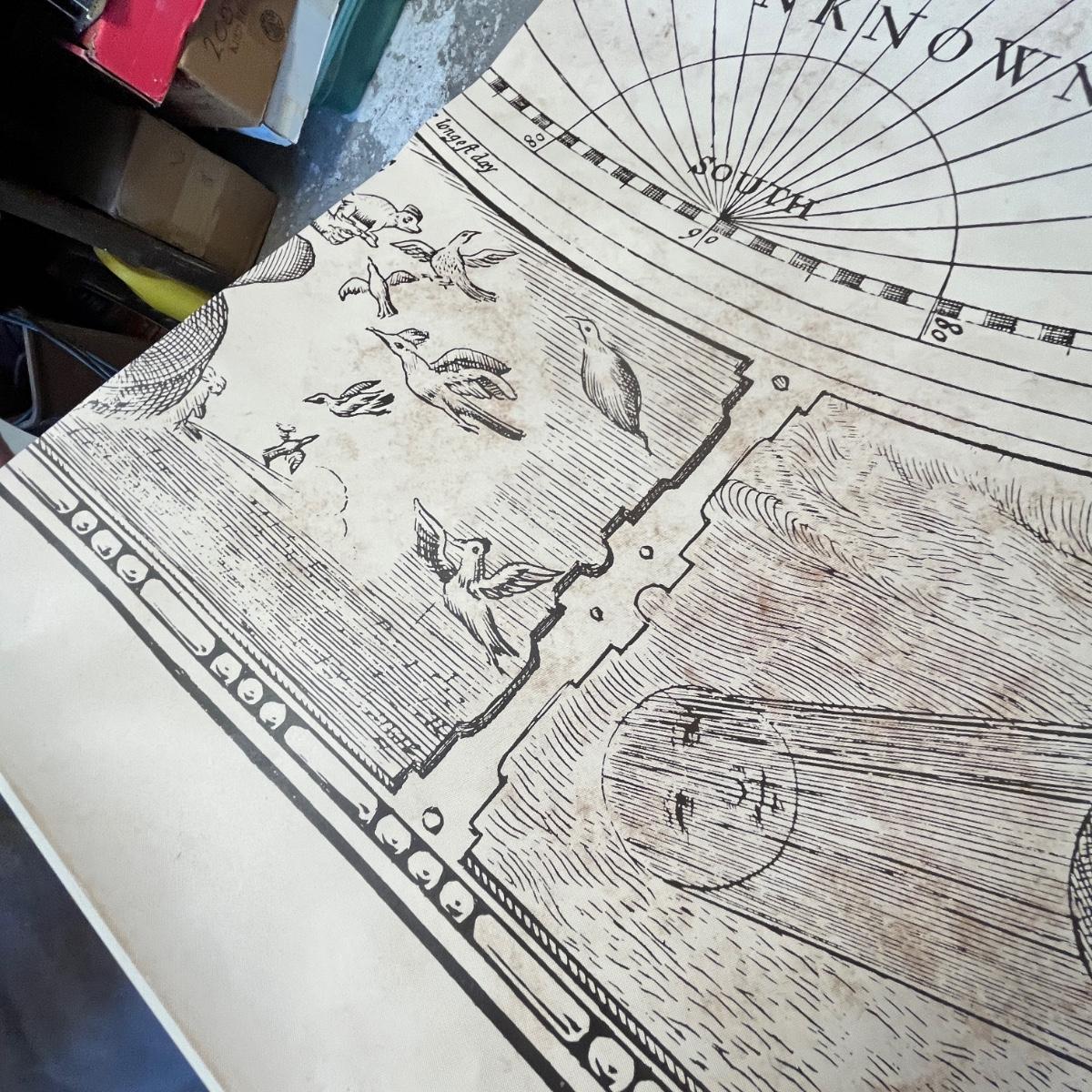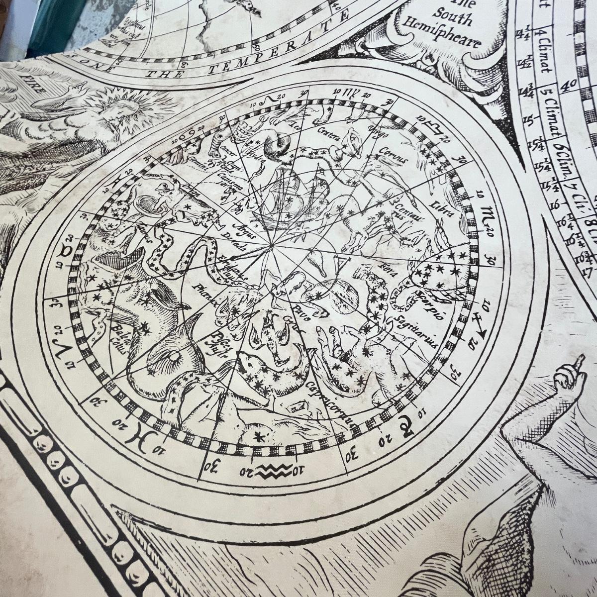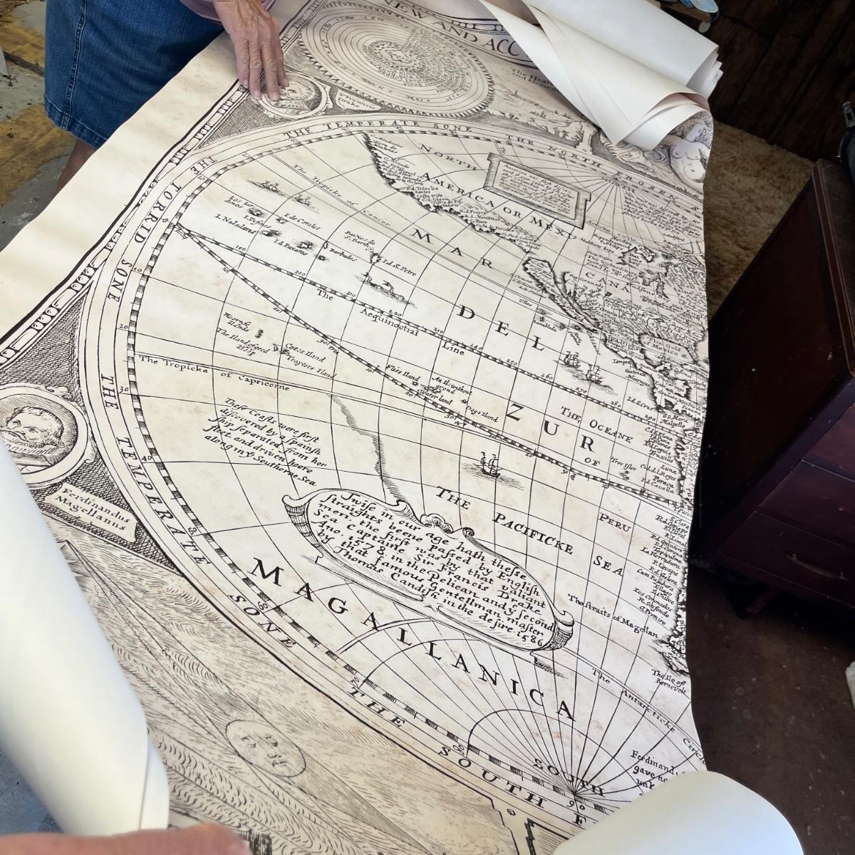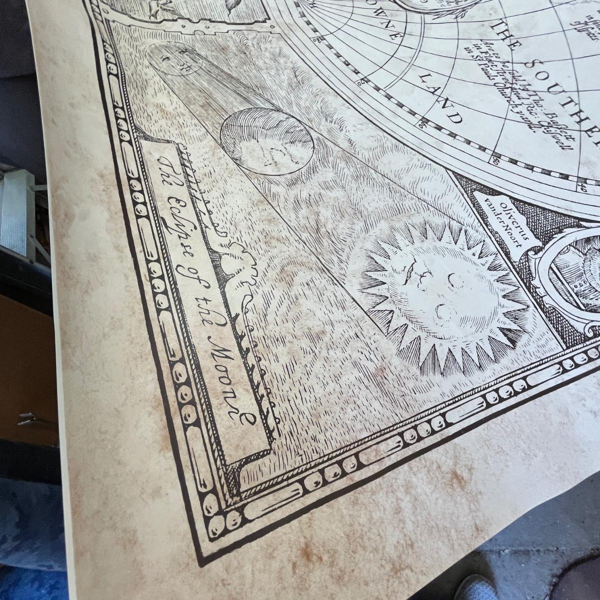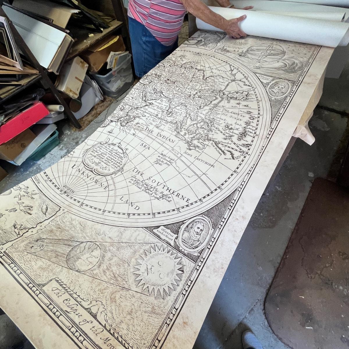 This is a very super cool piece! It is roughly 8 feet long. It comes in 3 sections. It is canvas type material. It could either be framed or used as wall paper. Very high quality piece. Rolled & in a tube.