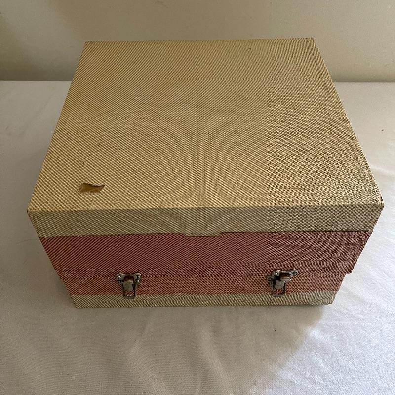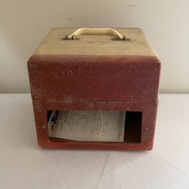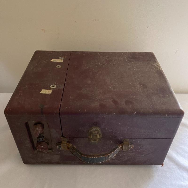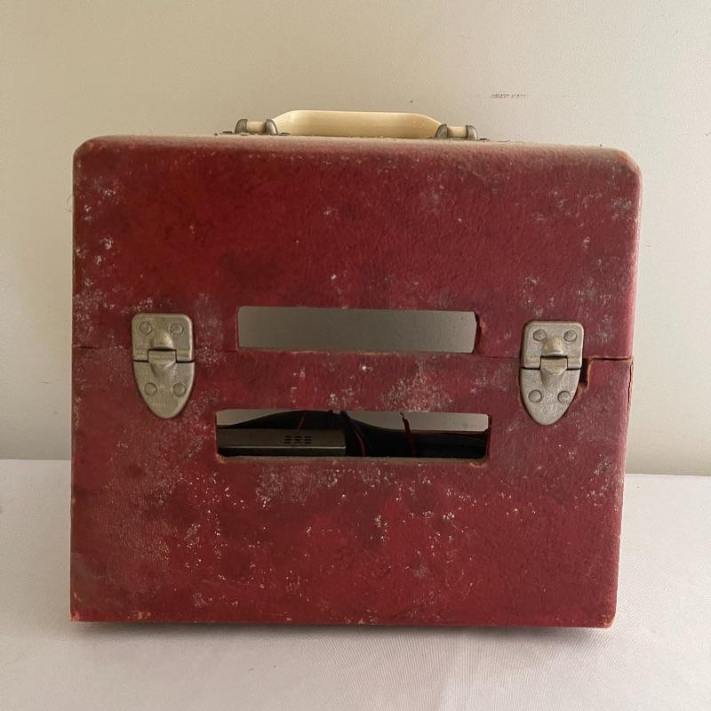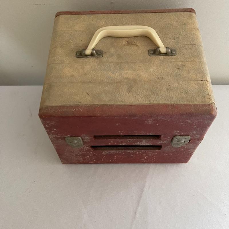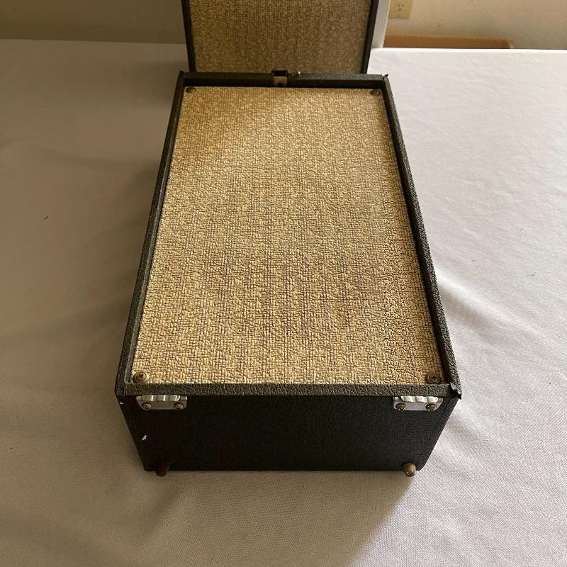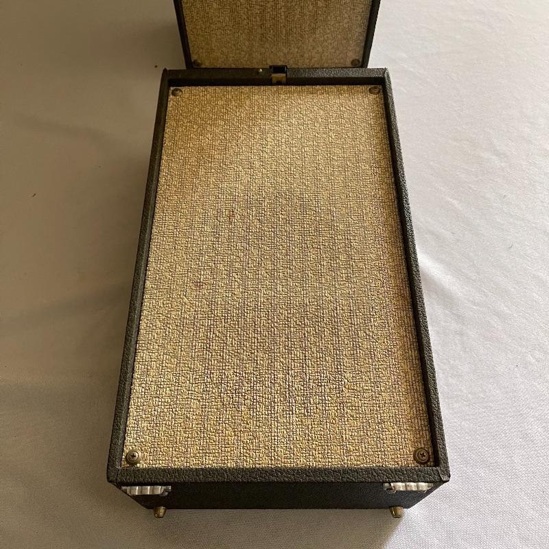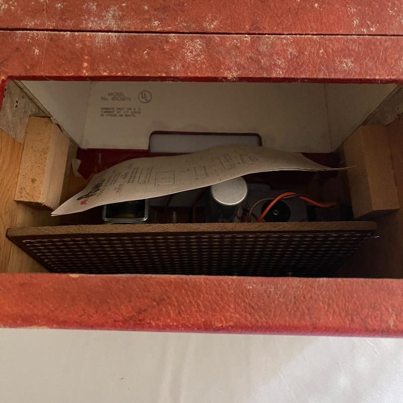 Webster Chicago 762 45 record player, record player cases, and more. There are two standing speakers and two empty cases. Two turntables are in portable cases, the clasps close and secure on both.