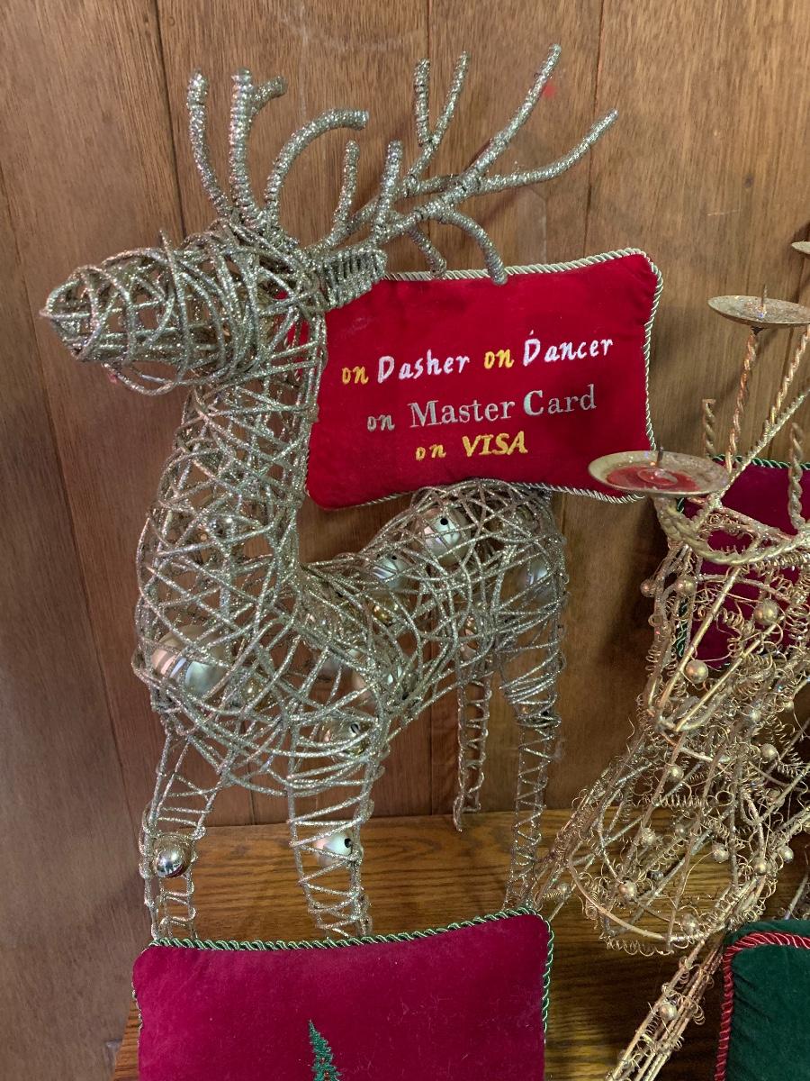 Lot 334: Gold Wire Reindeer & Unique Holiday Pillows