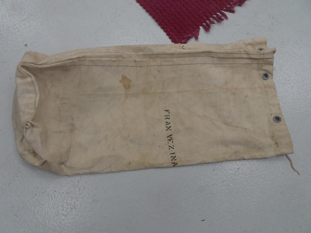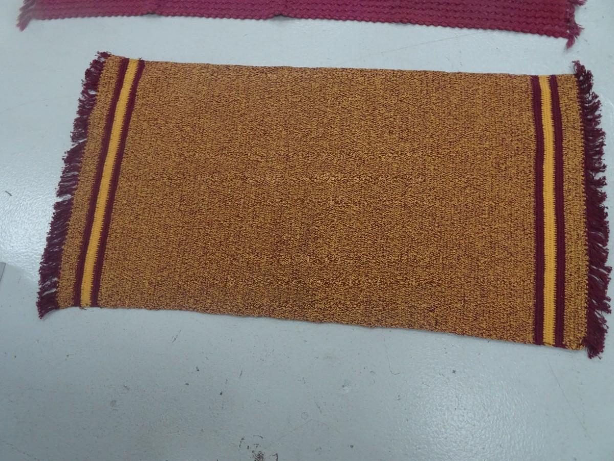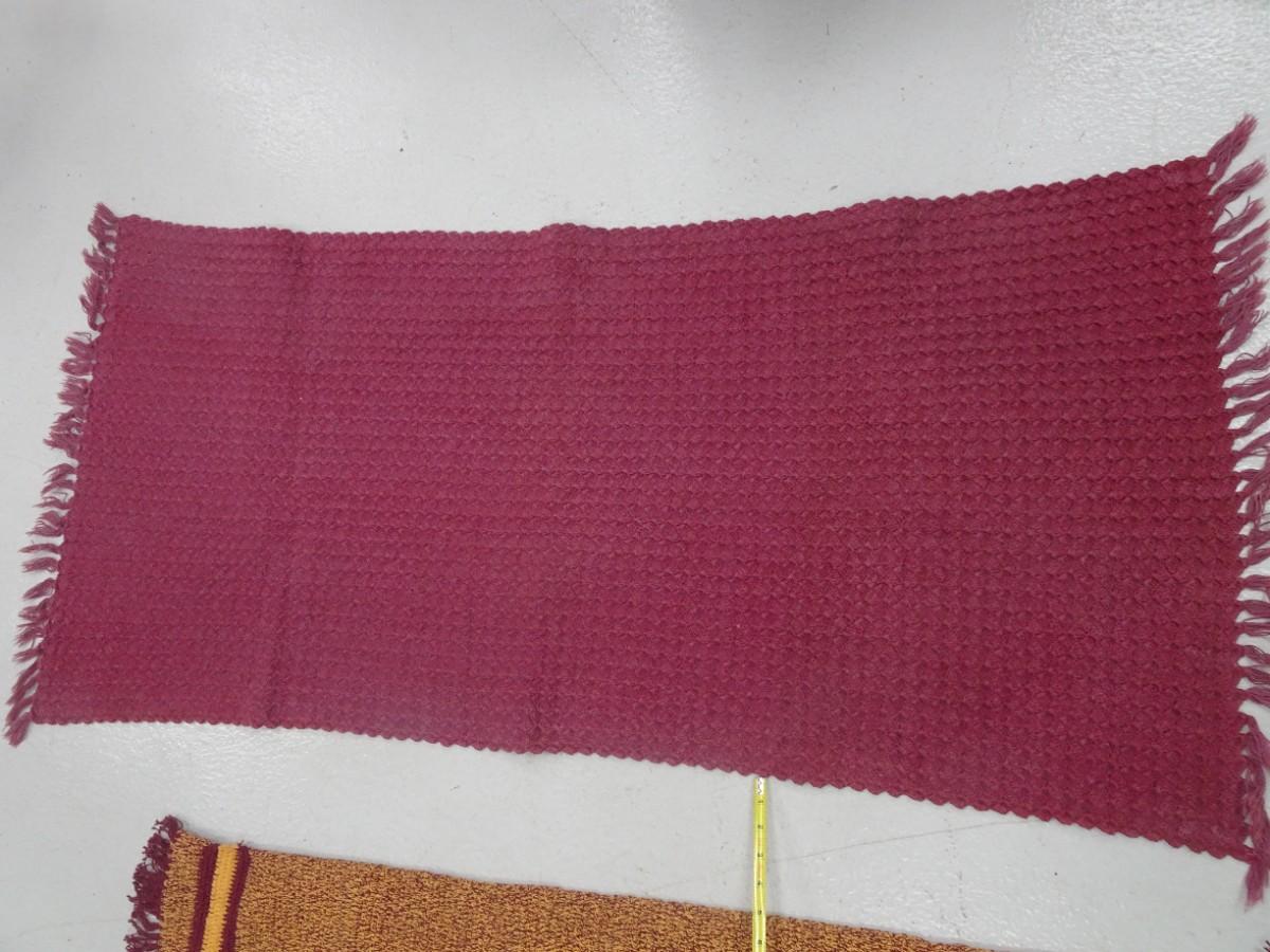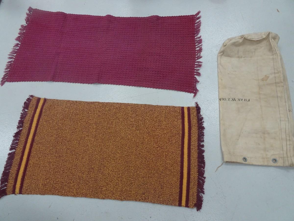 LOT 334. TWO THROW RUGS AND CANVAS BAG