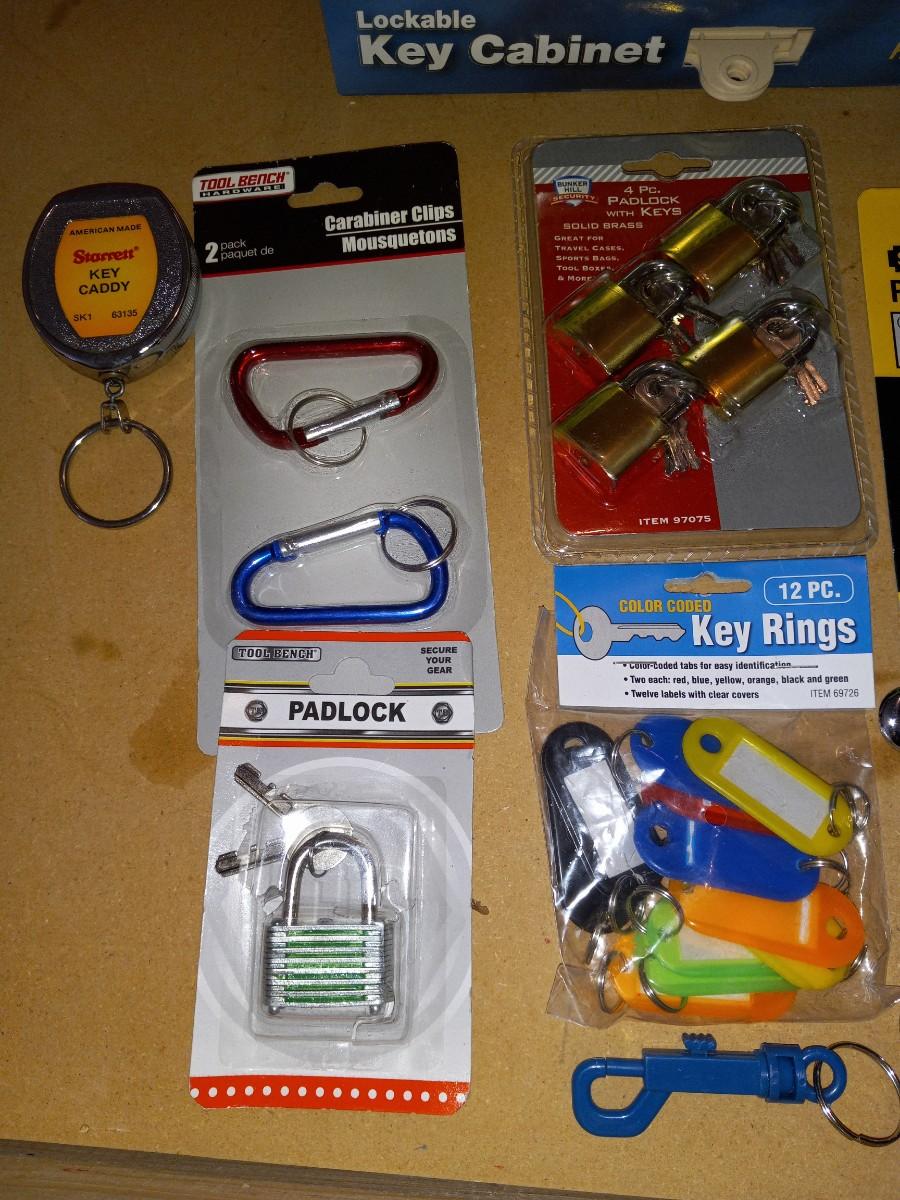 TWO NEW KEY CABINETS, KEYCHAINS AND PADLOCK