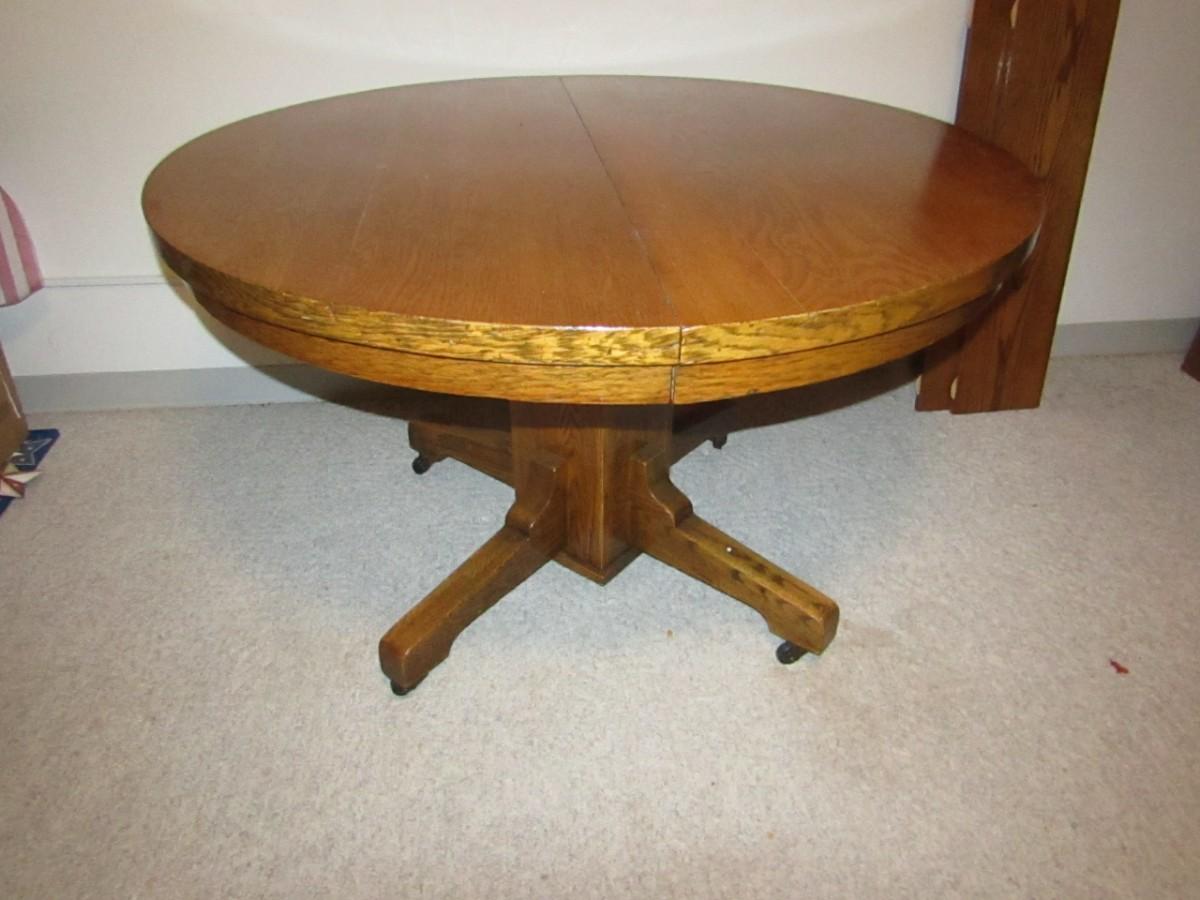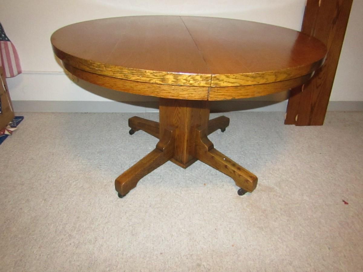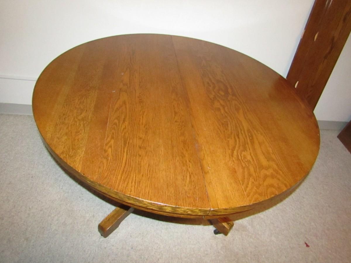 BEAUTIFUL TABLE IN GOOD SHAPE. IT MEASURES 48" AND HAS 3 LEAVES THAT MEASURE 9" EACH