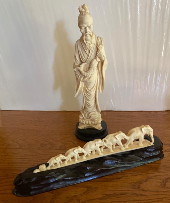 Lot #334 Carved Bone Elephants and A. Giannelli Statue