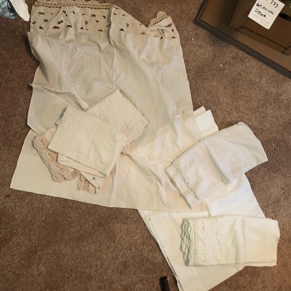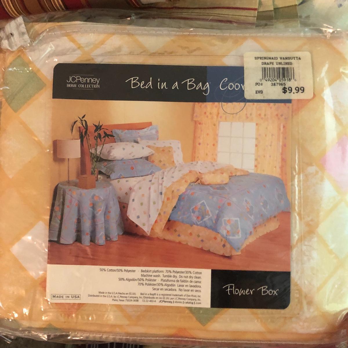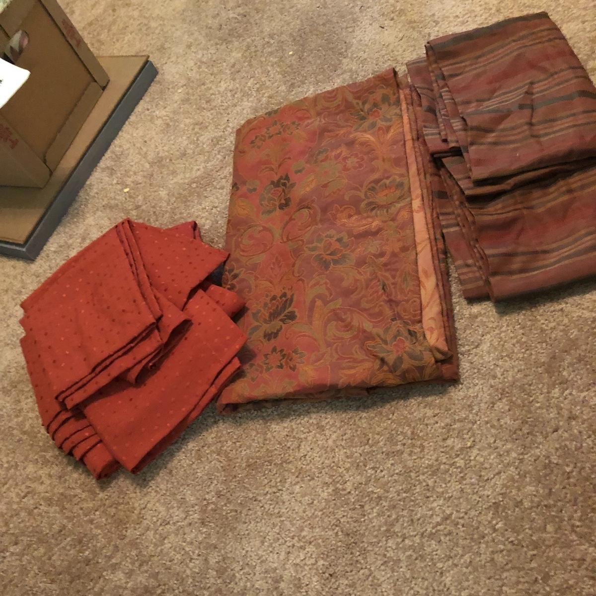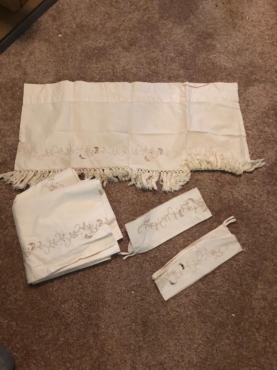 There are plenty of options for you in this lot that contains literally well over 40 Curtains, 1 adjustable aged Bronze colored curtain rod and a handful of valances. A good amount of these curtains are still in their packaging. Tab top and rod drapes make up the majority of them. The set of six green damask curtains each measure 42” x 50” and are designed to have a rod inserted.