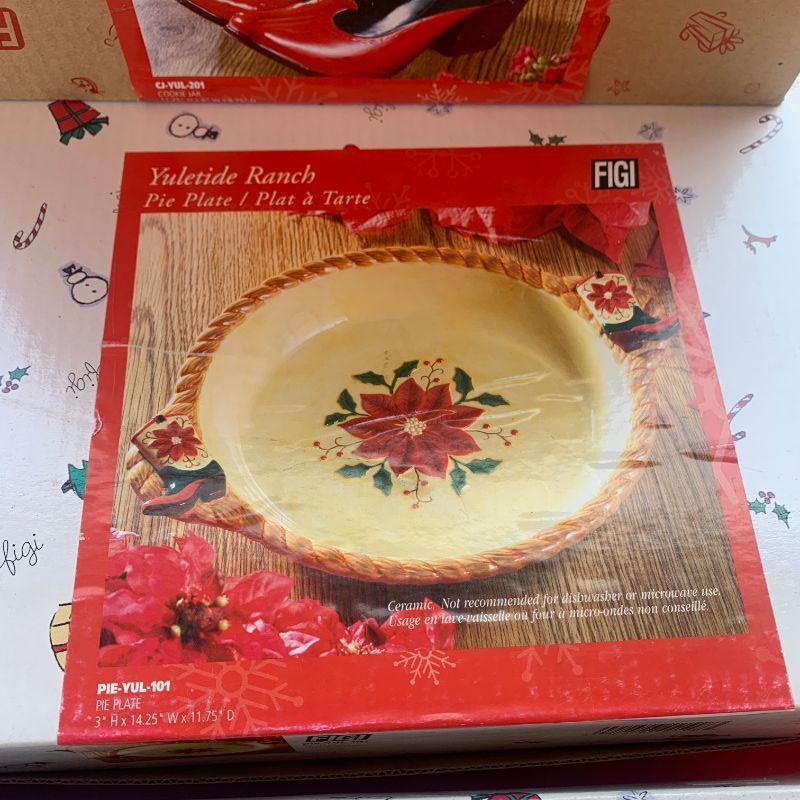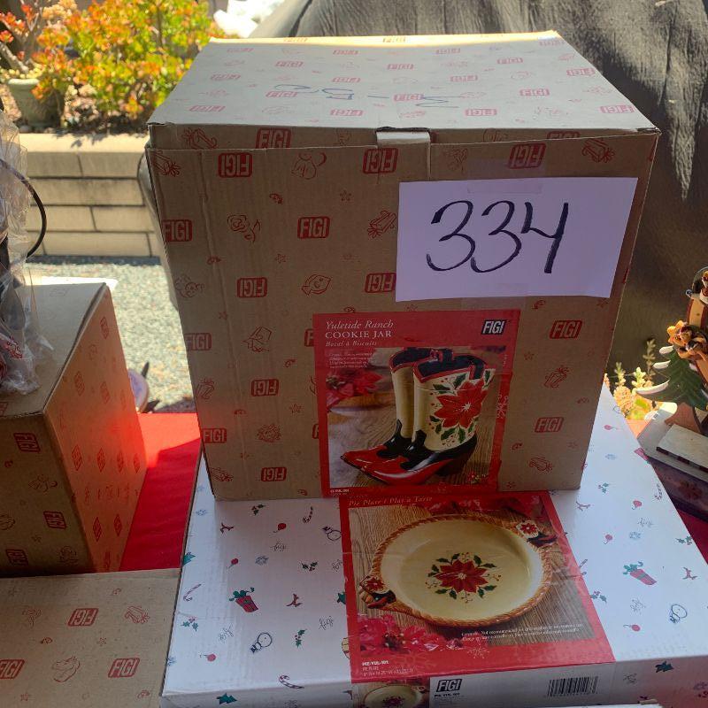 Lot 334. Figi Christmas Decor and dishes still in the box 5 pieces