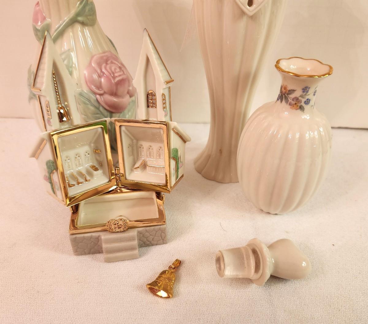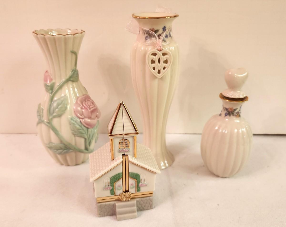 You get all you see here - 4 Pieces of LENOX porcelain - 2 vases, 1 perfume bottle, 1 hinged trinket box. All in good condition.