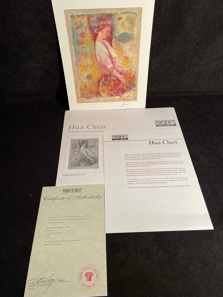 Lot 334 Lithograph by Hua Chen  "Gathering Blossoms"