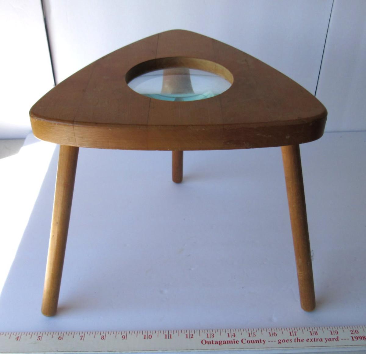 Lot 334: Vintage Childs Wood Stool, Magnifier