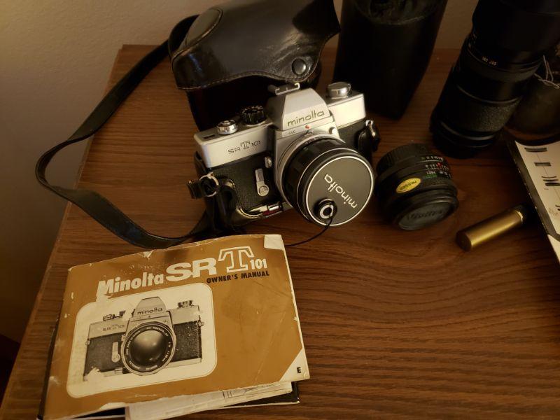 Vintage 35mm Minolta Camera plus 2 Other Lens