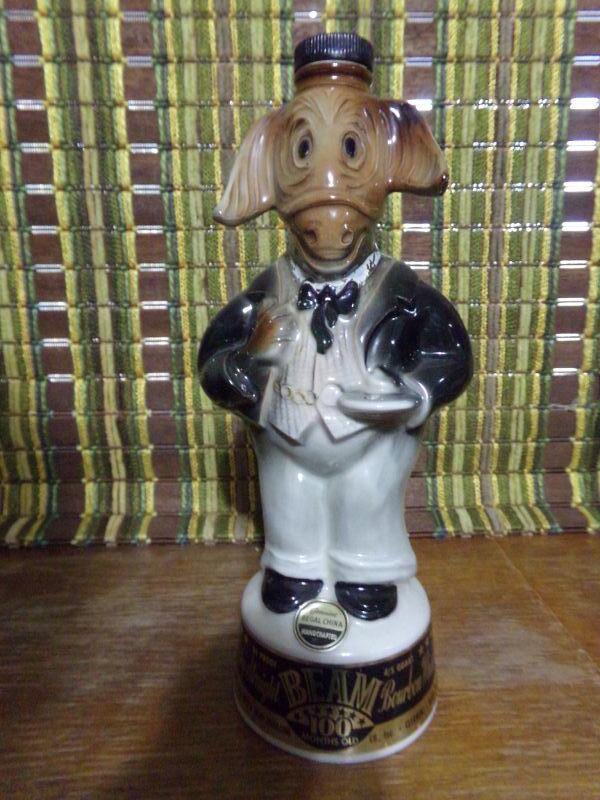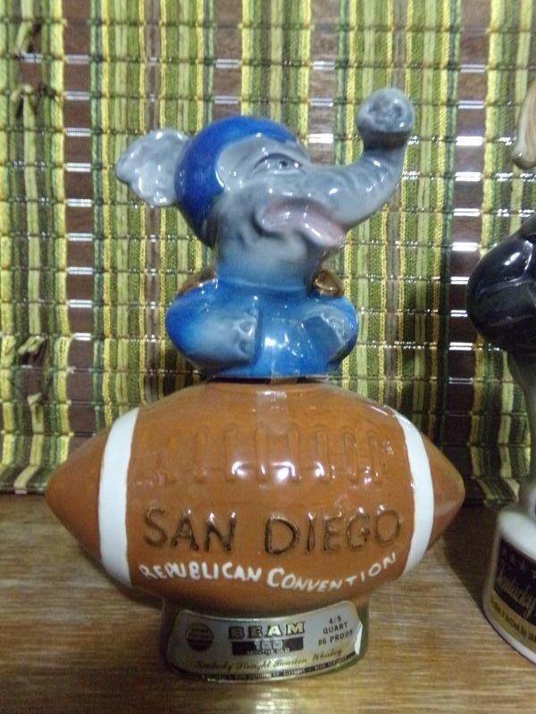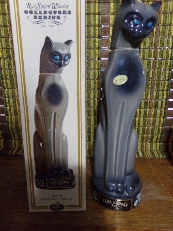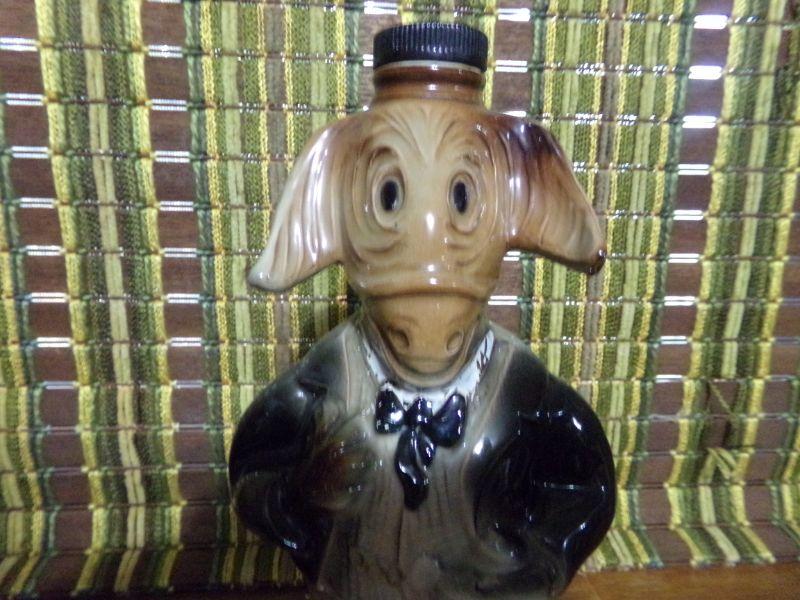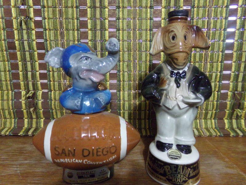 LOT 334 TWO ELEPHANTS, AM LEGION, DELCO BATTERY, CAT & ?? DECANTERS