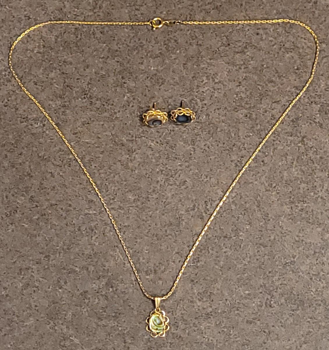 Lot 335: Gold Plated & Abalone Shell Necklace & Earrings