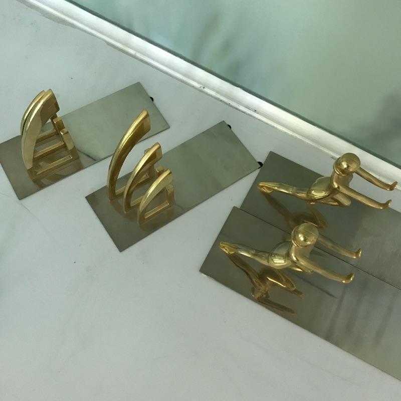 Largest bookend measures 3.5” x 9.75” x 5”.