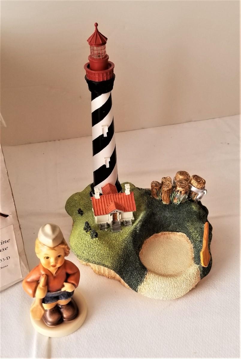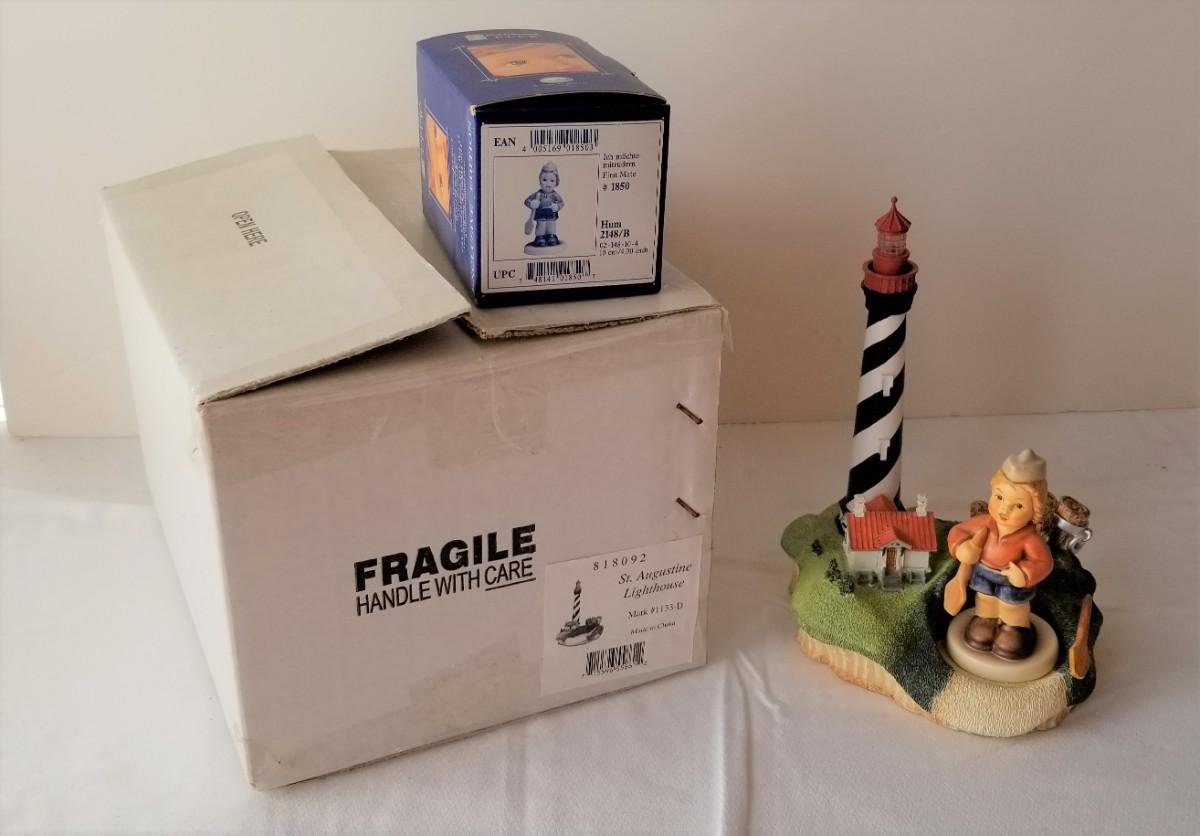 Two piece Hummel lot - "St. Augustine Lighthouse" and "First mate" - has boxes. Lighthouse designed to light up - no battery inside. 7.5" tall. Good condition.