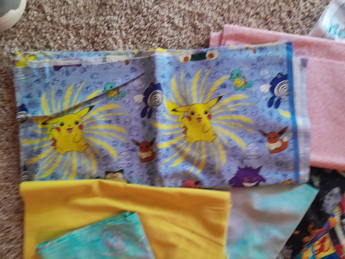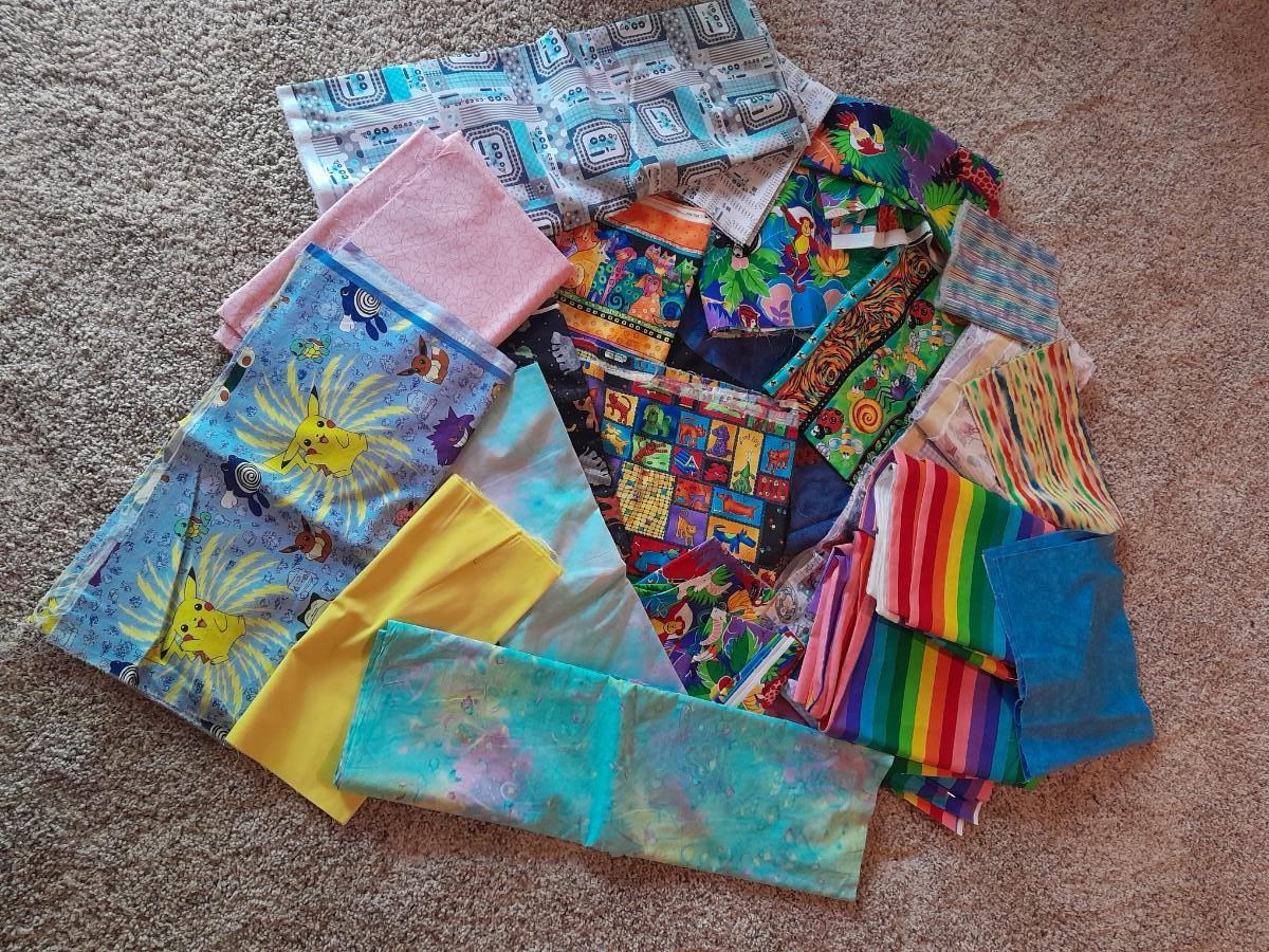 LOT 335 MORE FABRIC SCRAPS, CHILDREN'S PRINTS POKEMON AND MORE