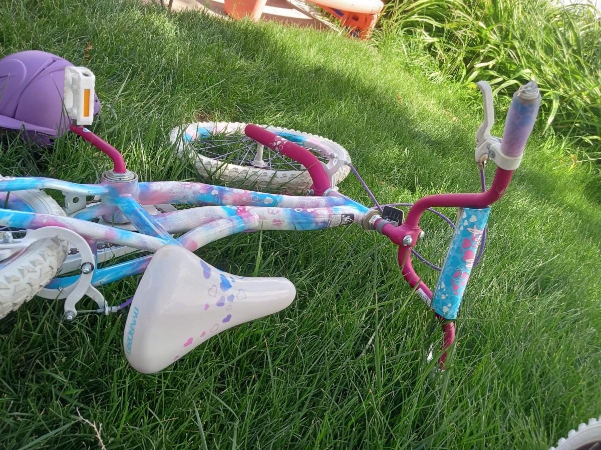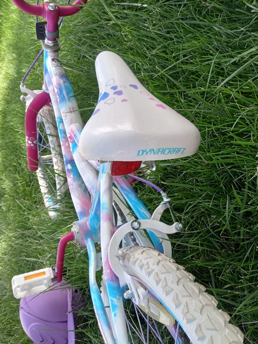 DYNACRAFT SWEETHEART BIKE IS IN GOOD SHAPE, NO KICK STAND, WOULD FIT A 5-7 YR OLD