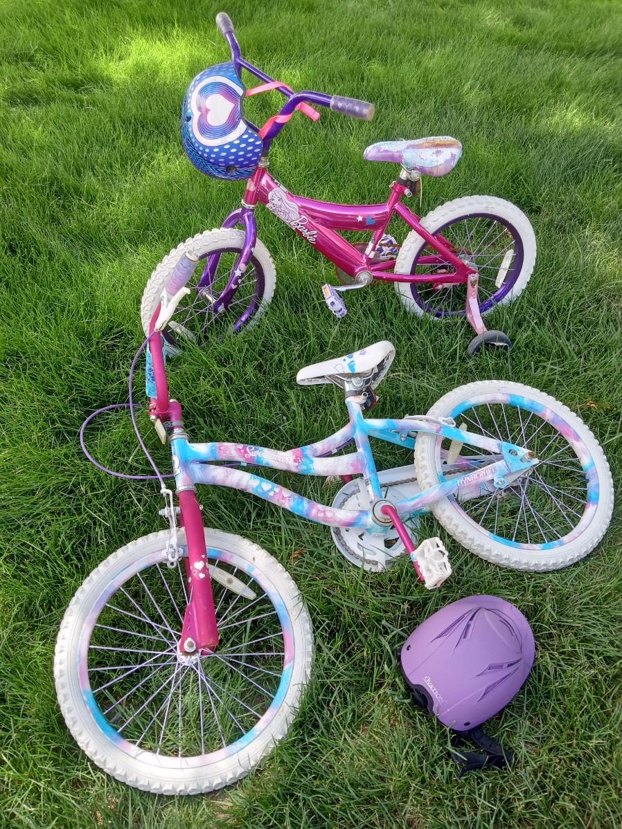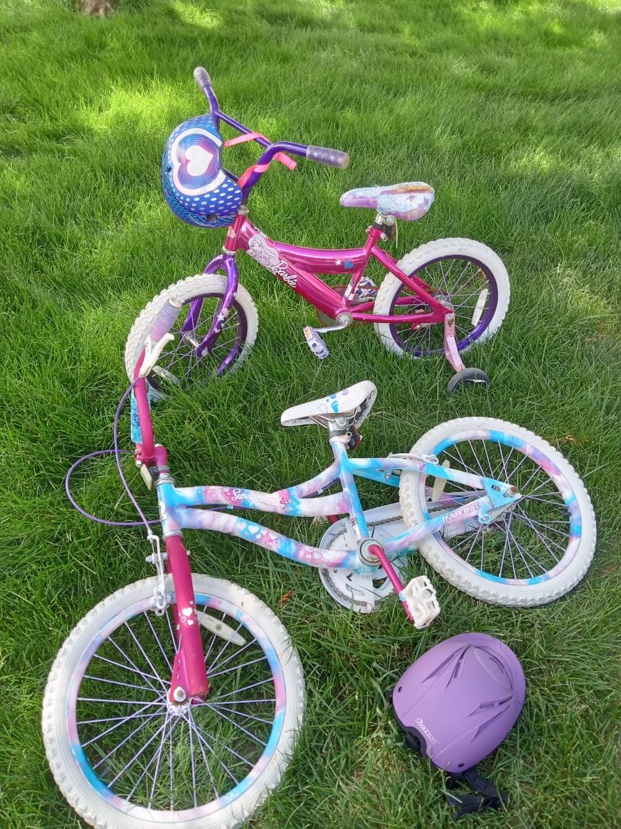 LOT 335 TWO LITTLE GIRL'S BIKES WITH HELMETS (OB)