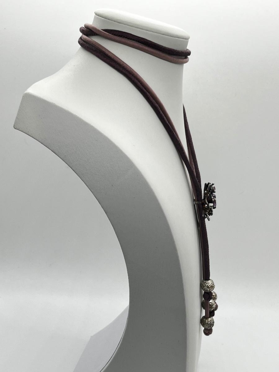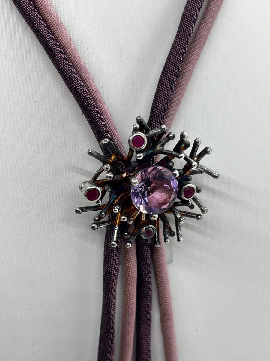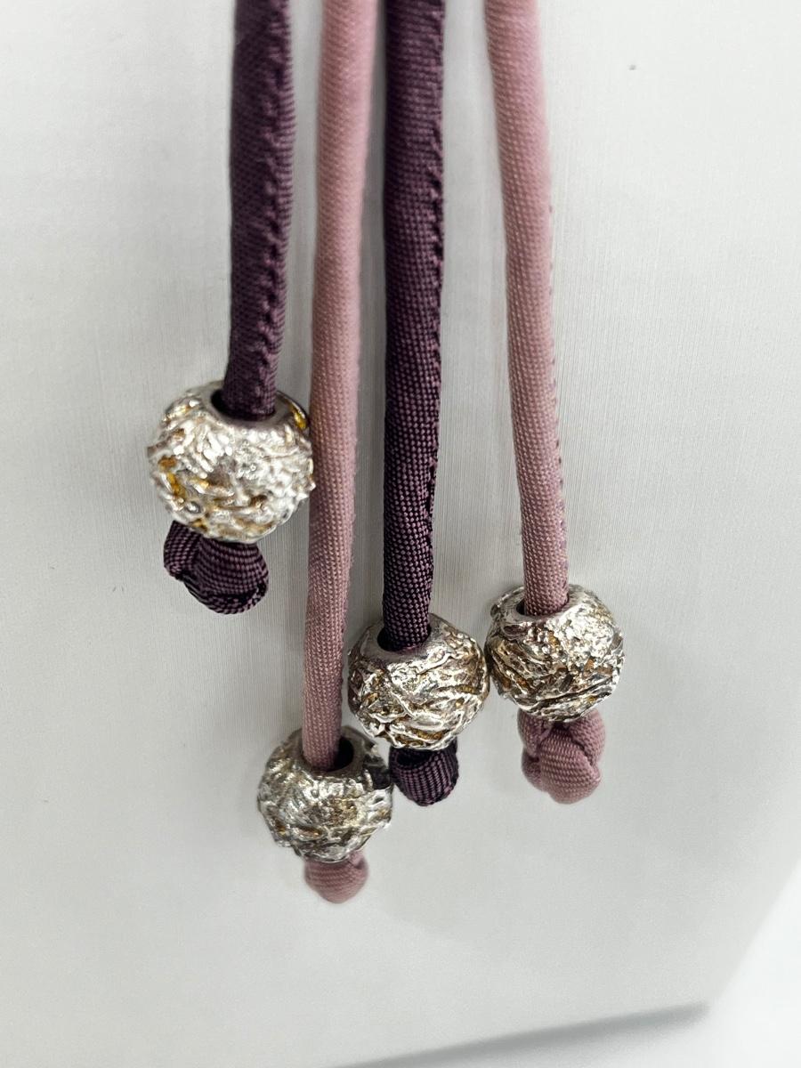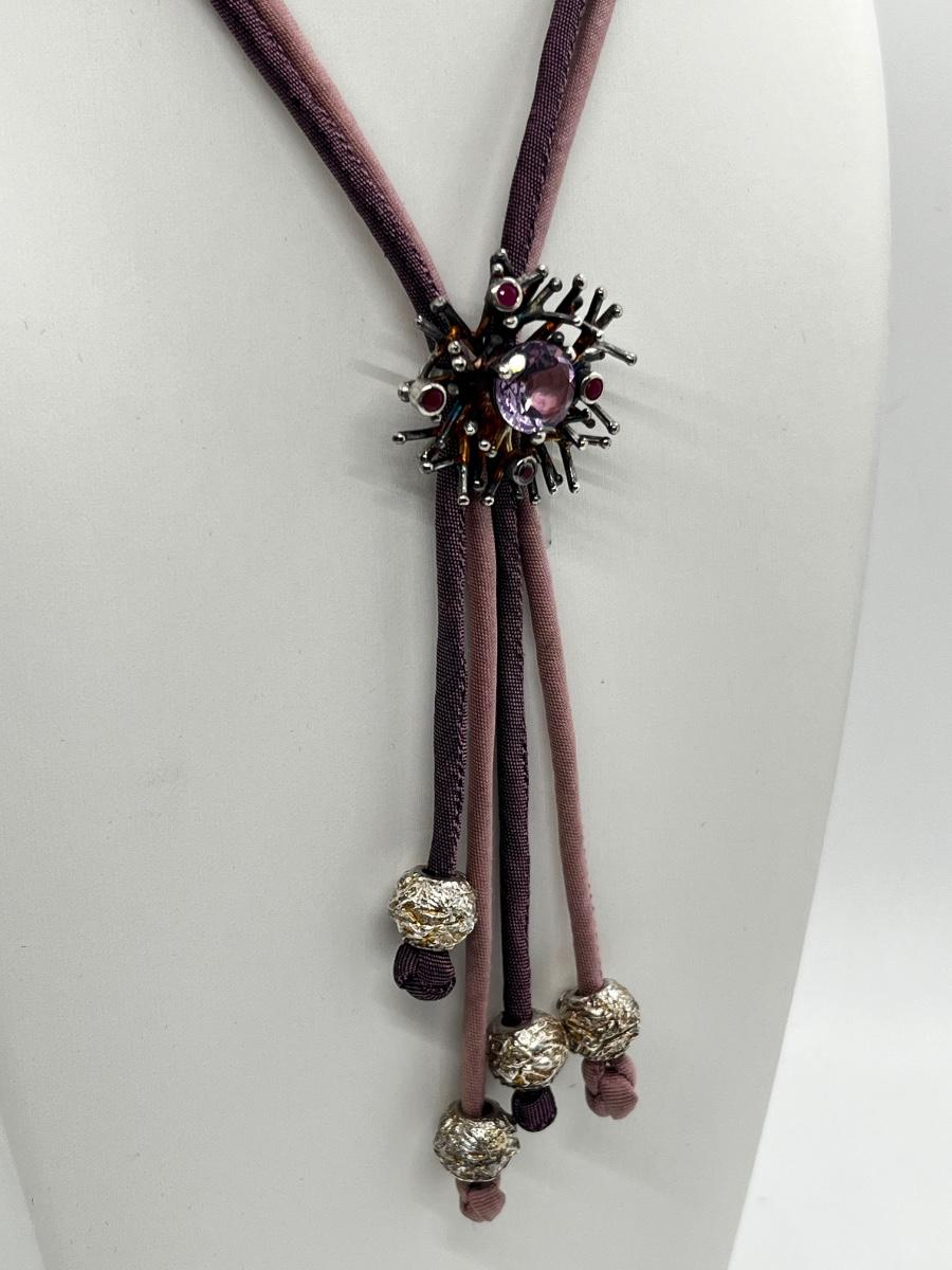 Lot 335J: Satin Cord Bolo Necklace + Two 7" Amethyst and Freshwater Pearl Braceletes with 14K Clasps