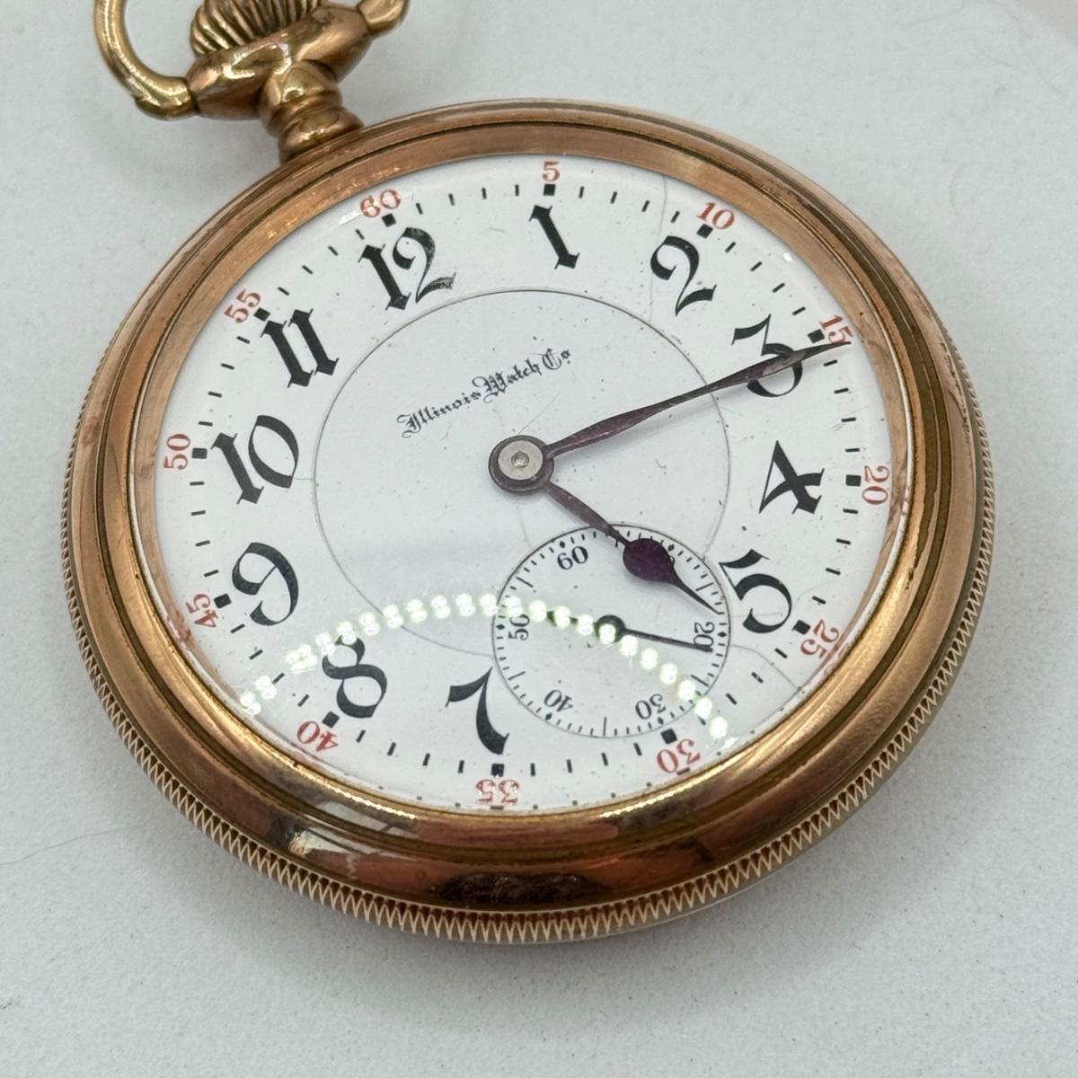LOT 335J: Vintage 21 Jewels Illinois Watch Co Men’s Pocket Watch w/ Gold Fill Watch Chain