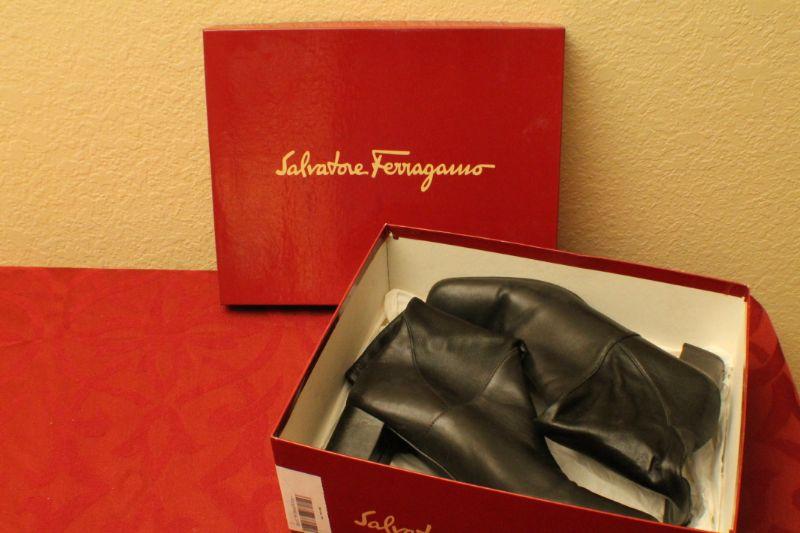 LOT #336: Salvatore Ferragamoâ„¢ SANTARA Soft Black Calf Leather Boots w/ Original Box