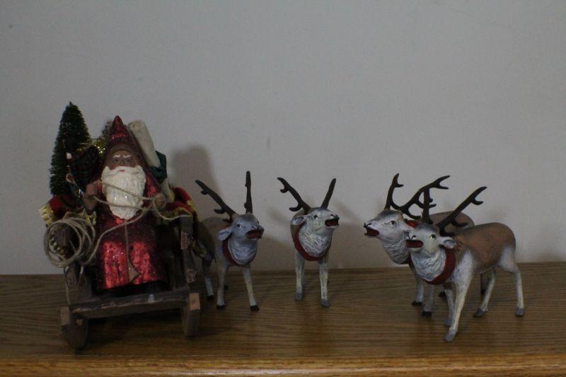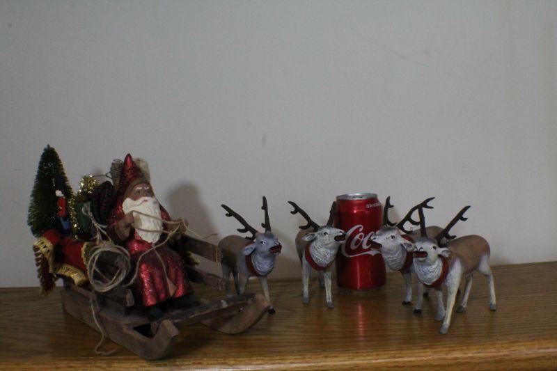 LOT #336: Santa Claus on Sleigh Delivering Presents w/ Reindeer