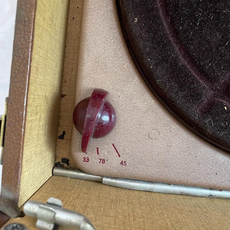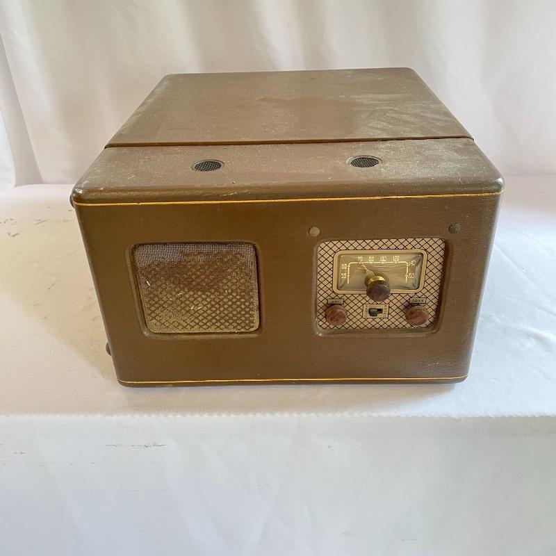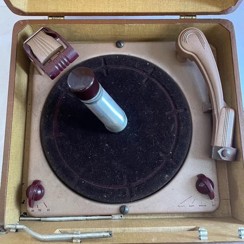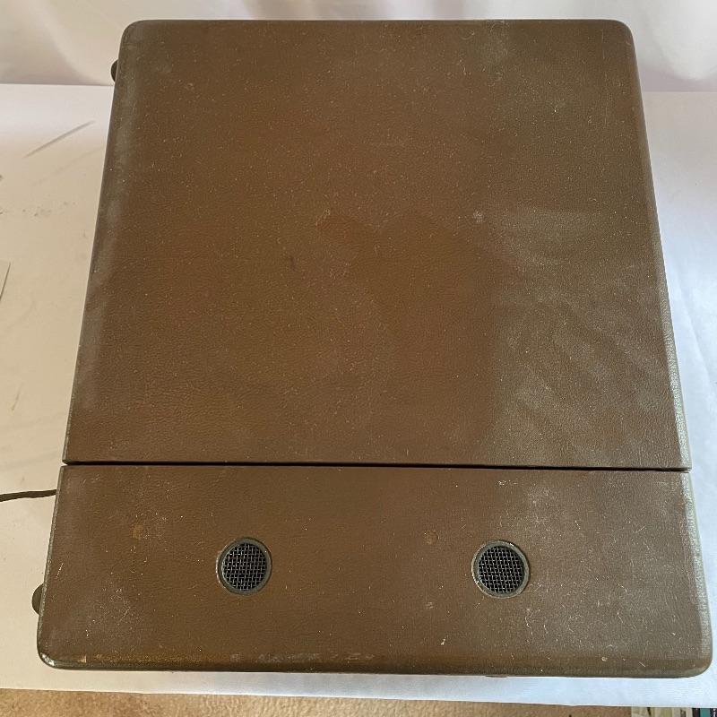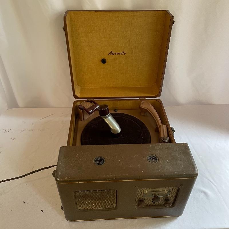 Aircastle Radio and Record Player. Electric cord has some dry-rotting and unit was not tested. Case is dusty, but appears in very nice shape for its age. See photos.