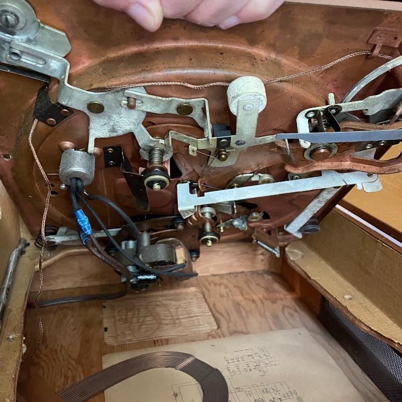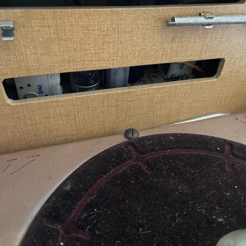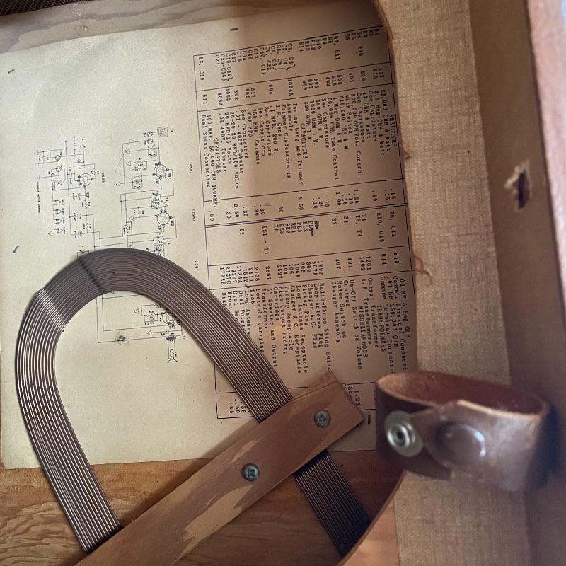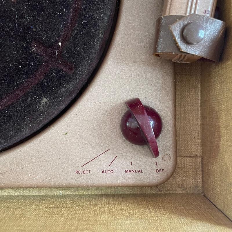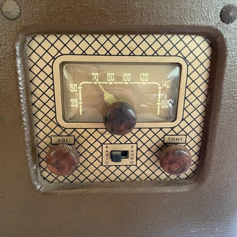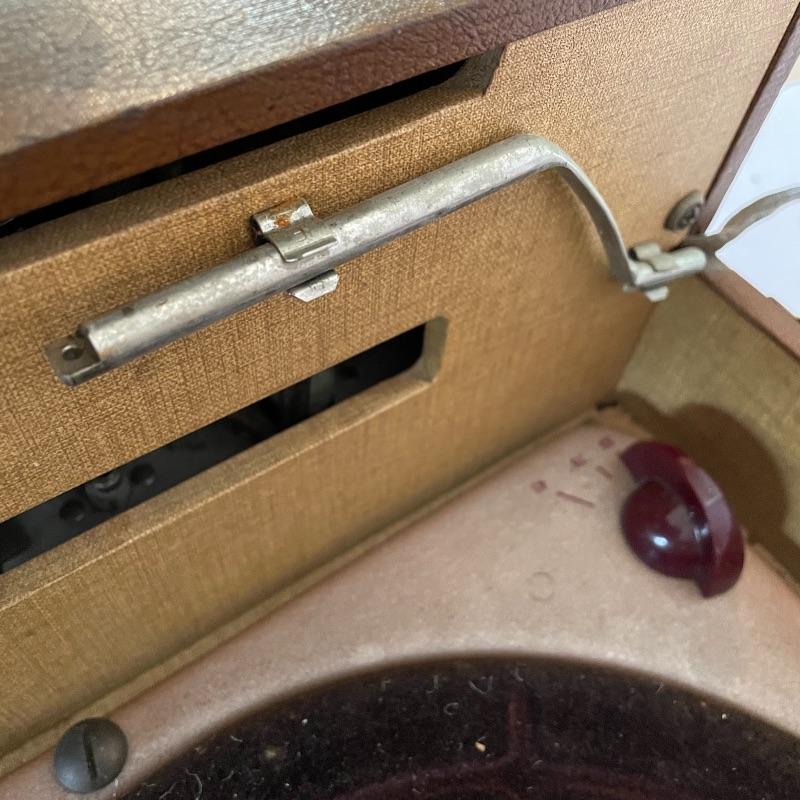 Aircastle Radio and Record Player. Electric cord has some dry-rotting and unit was not tested. Case is dusty, but appears in very nice shape for its age. See photos.