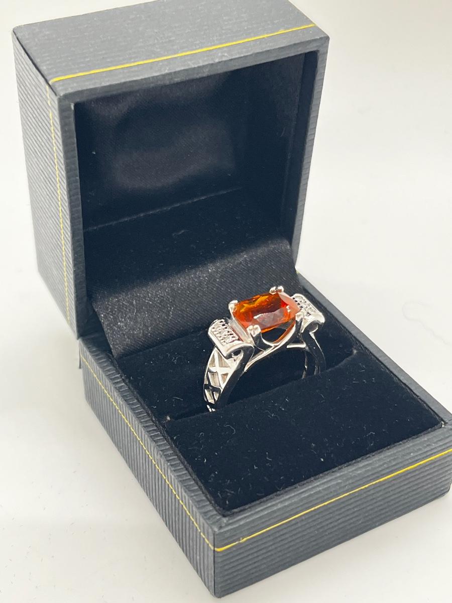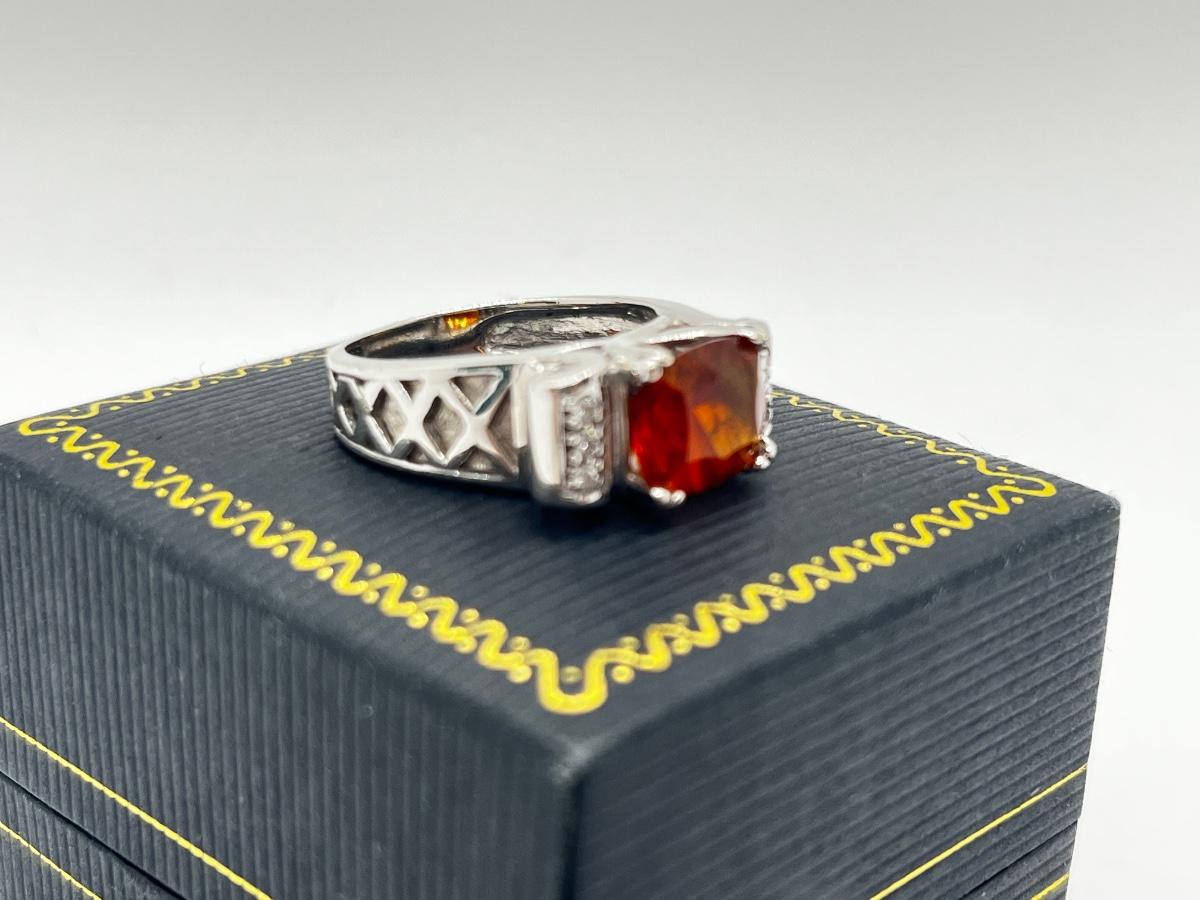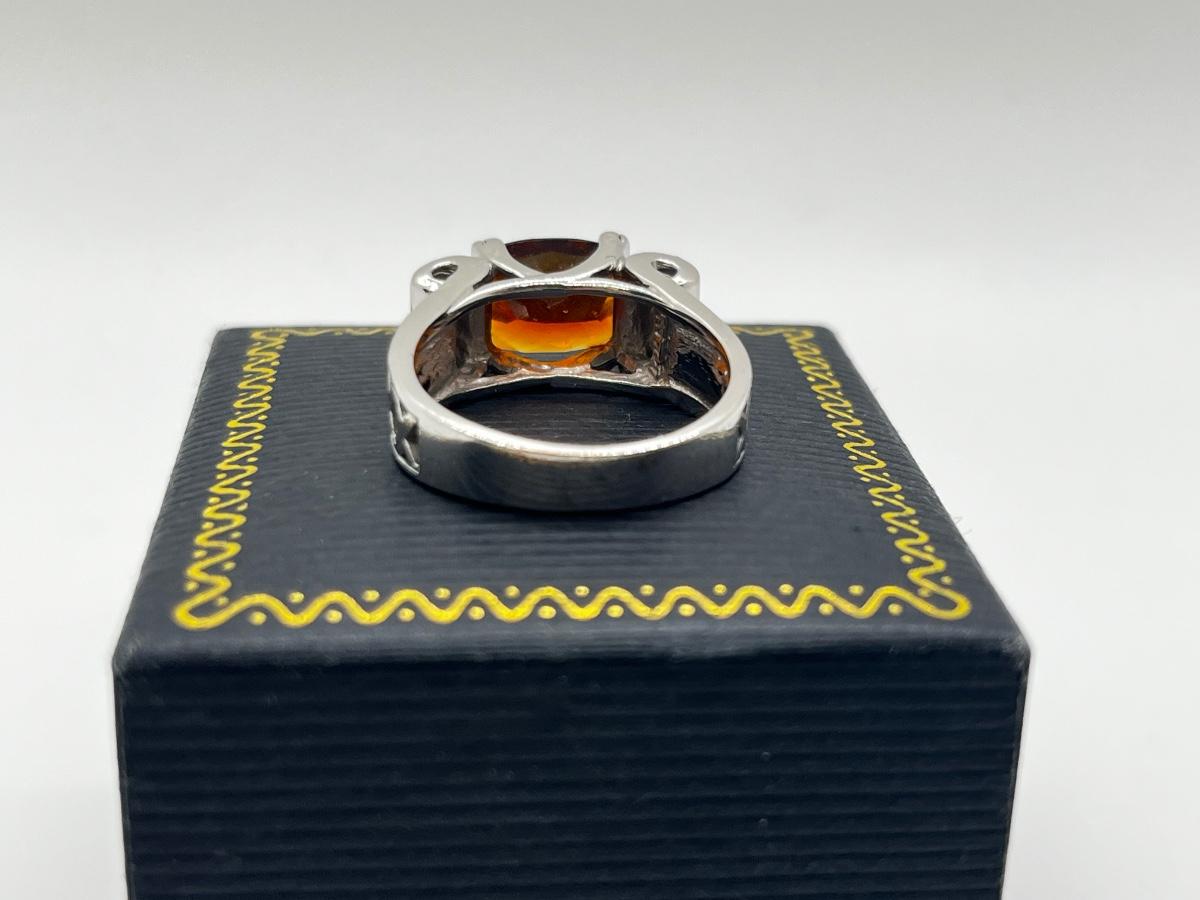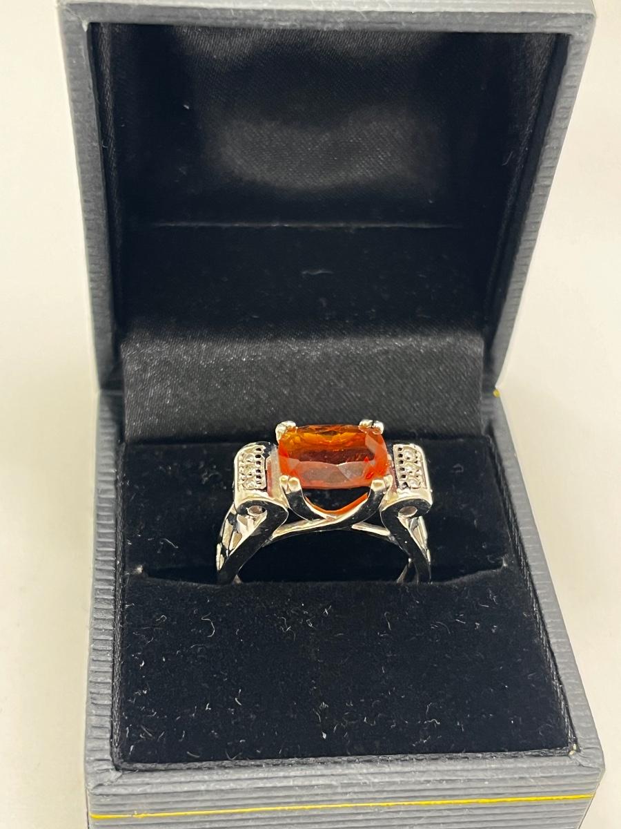 Lot 336J: Orange Sapphire and Diamond 14K White Gold Size 8 Ring-7.5gtw