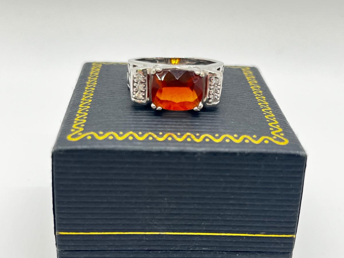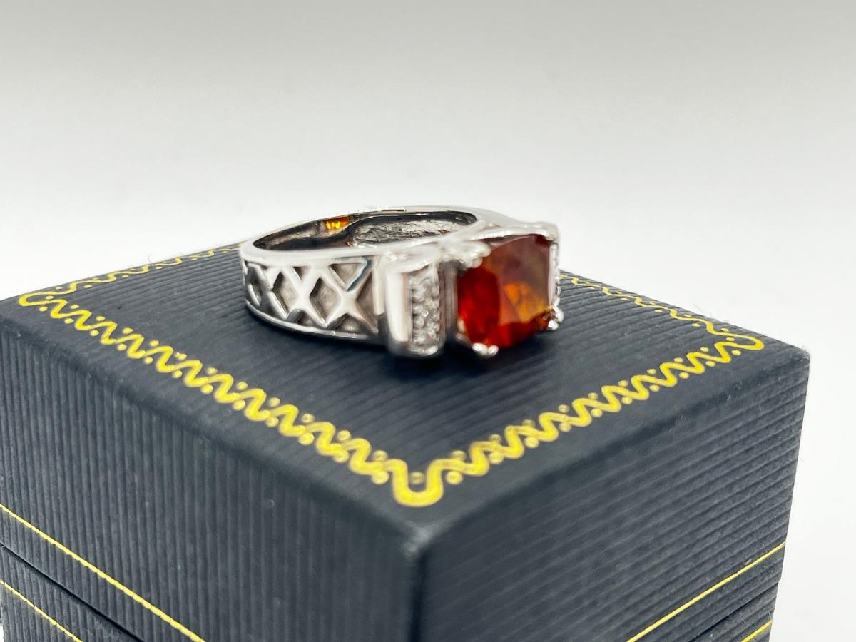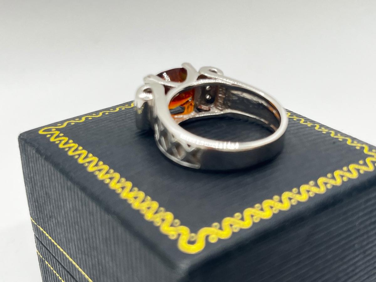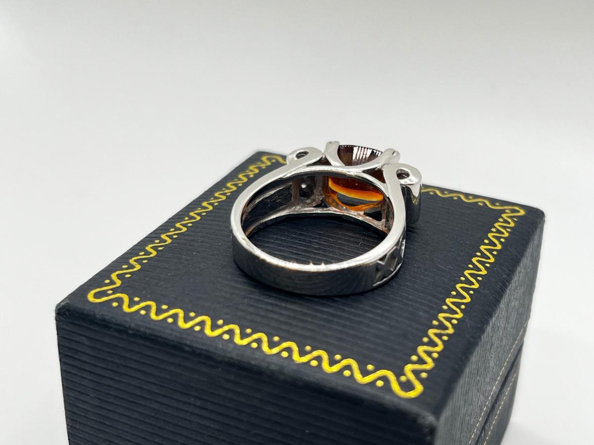 Lot 336J: Orange Sapphire and Diamond 14K White Gold Size 8 Ring-7.5gtw