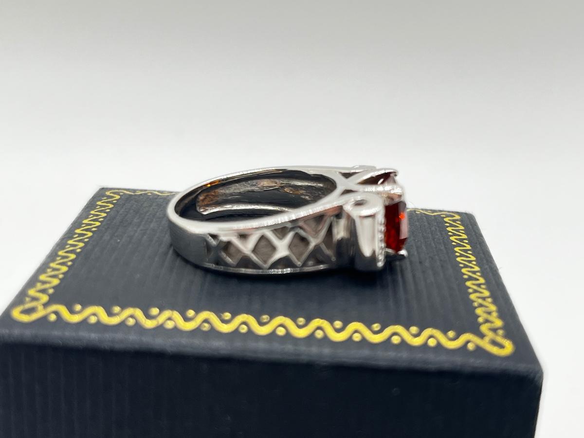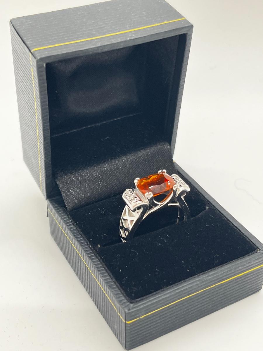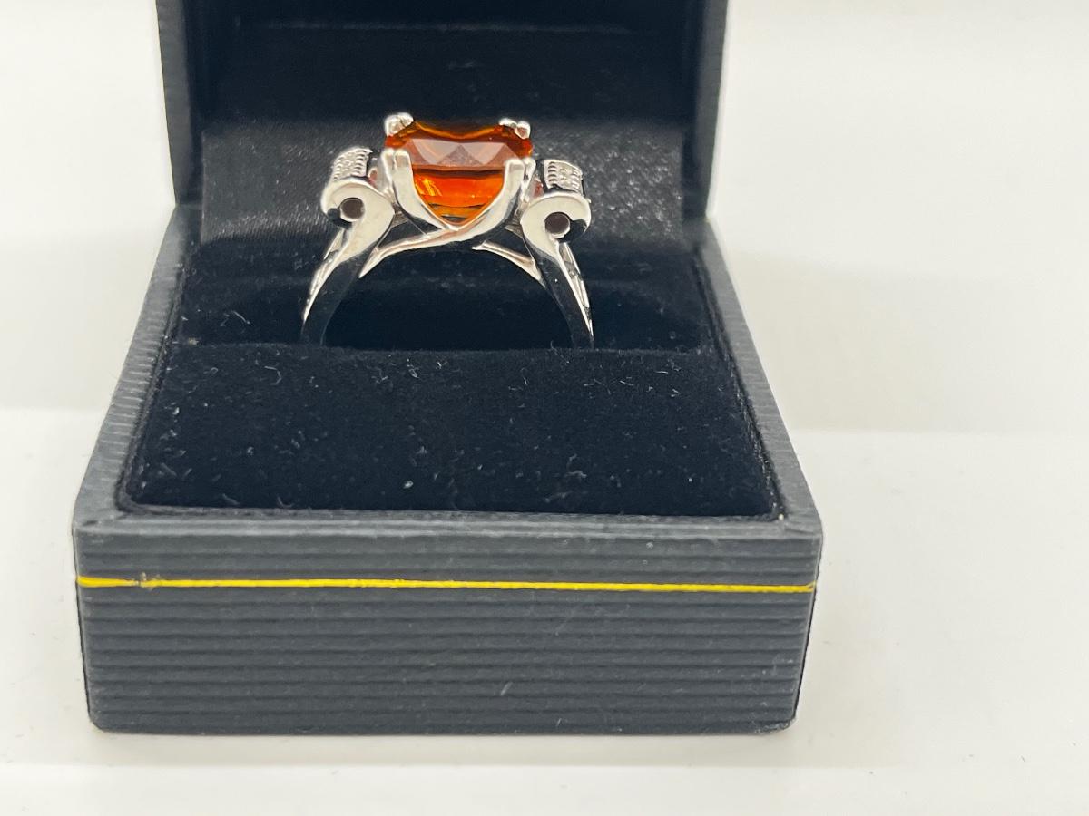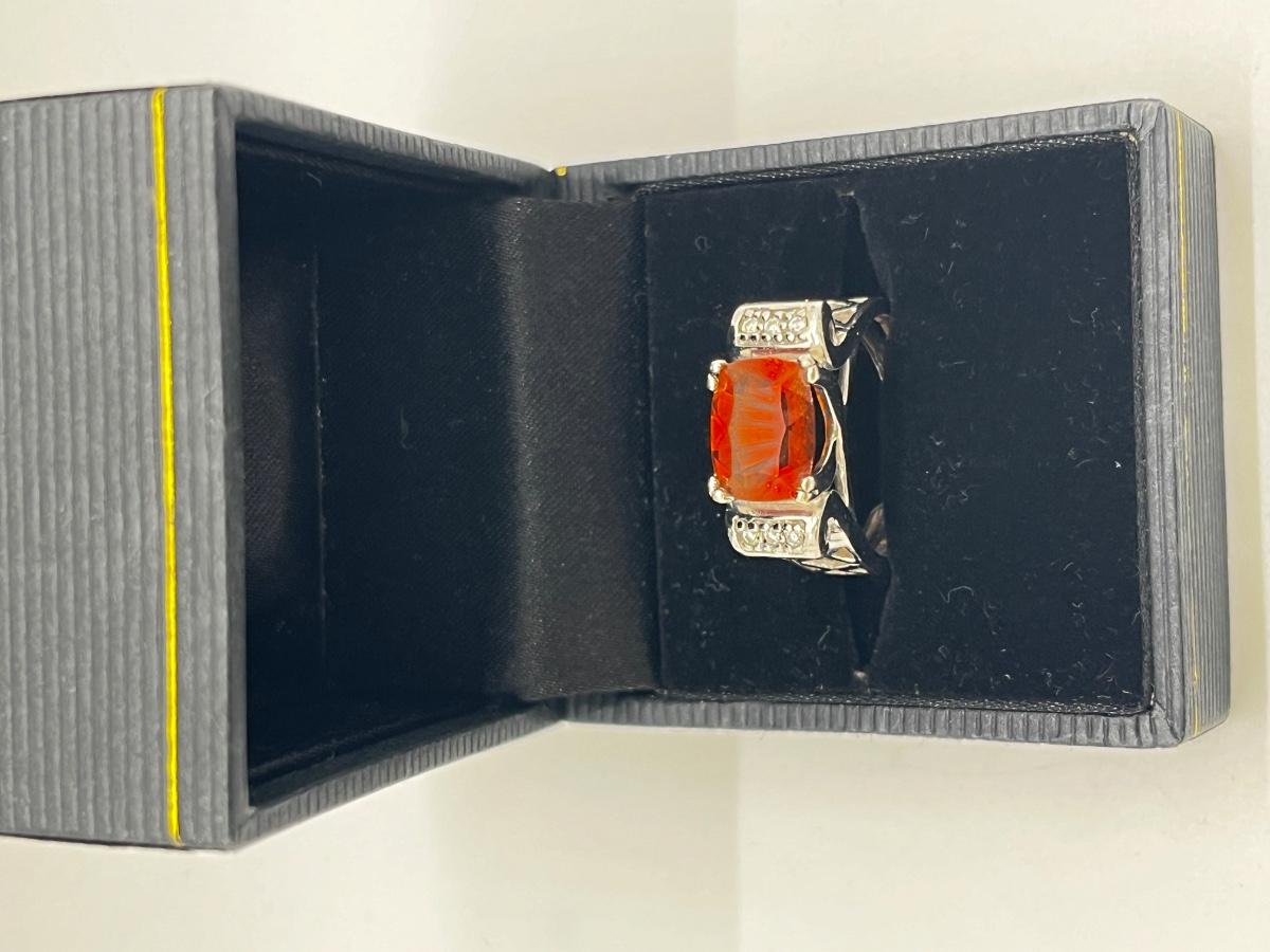 Lot 336J: Orange Sapphire and Diamond 14K White Gold Size 8 Ring-7.5gtw