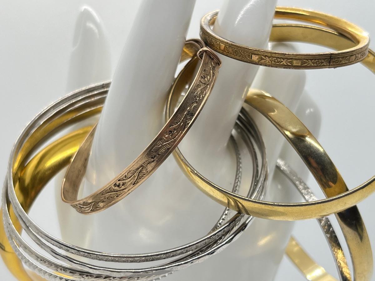 Lot 336J: Collection of Silvertone and Goldtone Bangle Bracelets