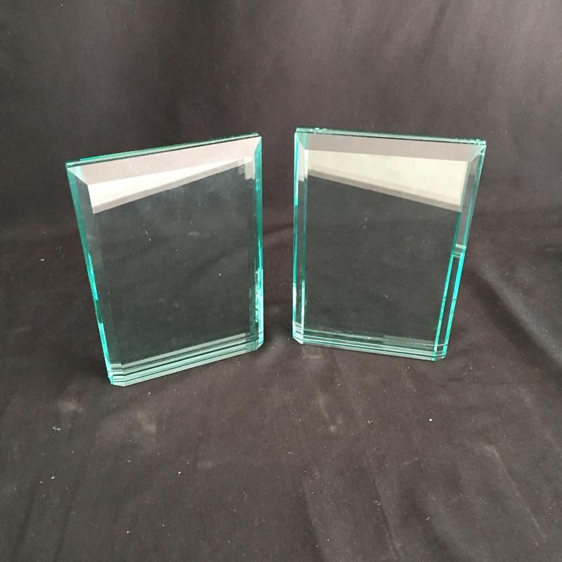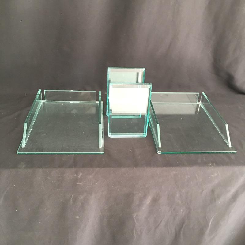 These heavy glass accessories look elegant to organize papers. Add a glass paperweight and your set. Includes Two letter holders and two glass picture frames.