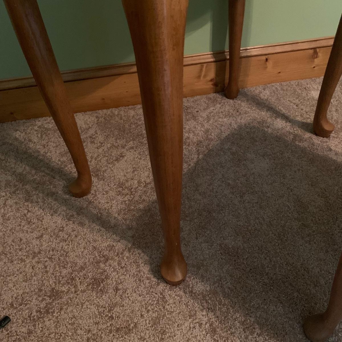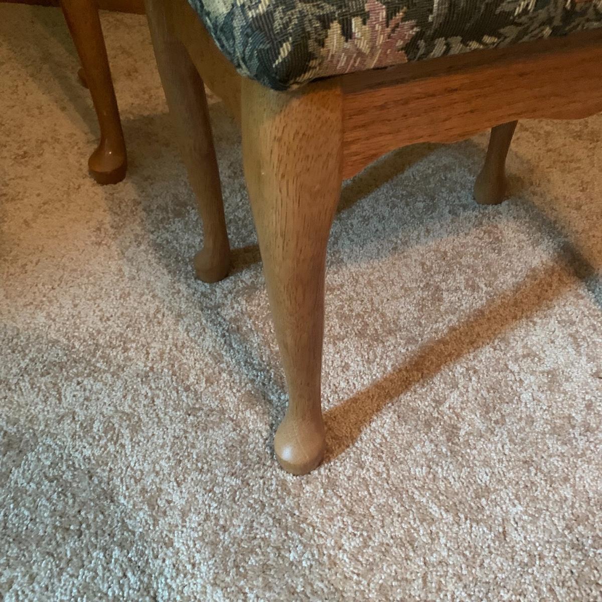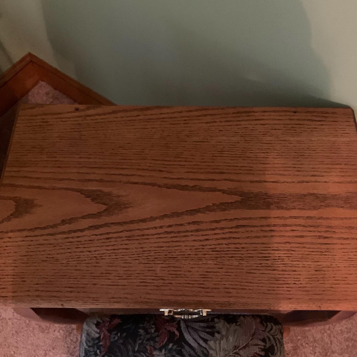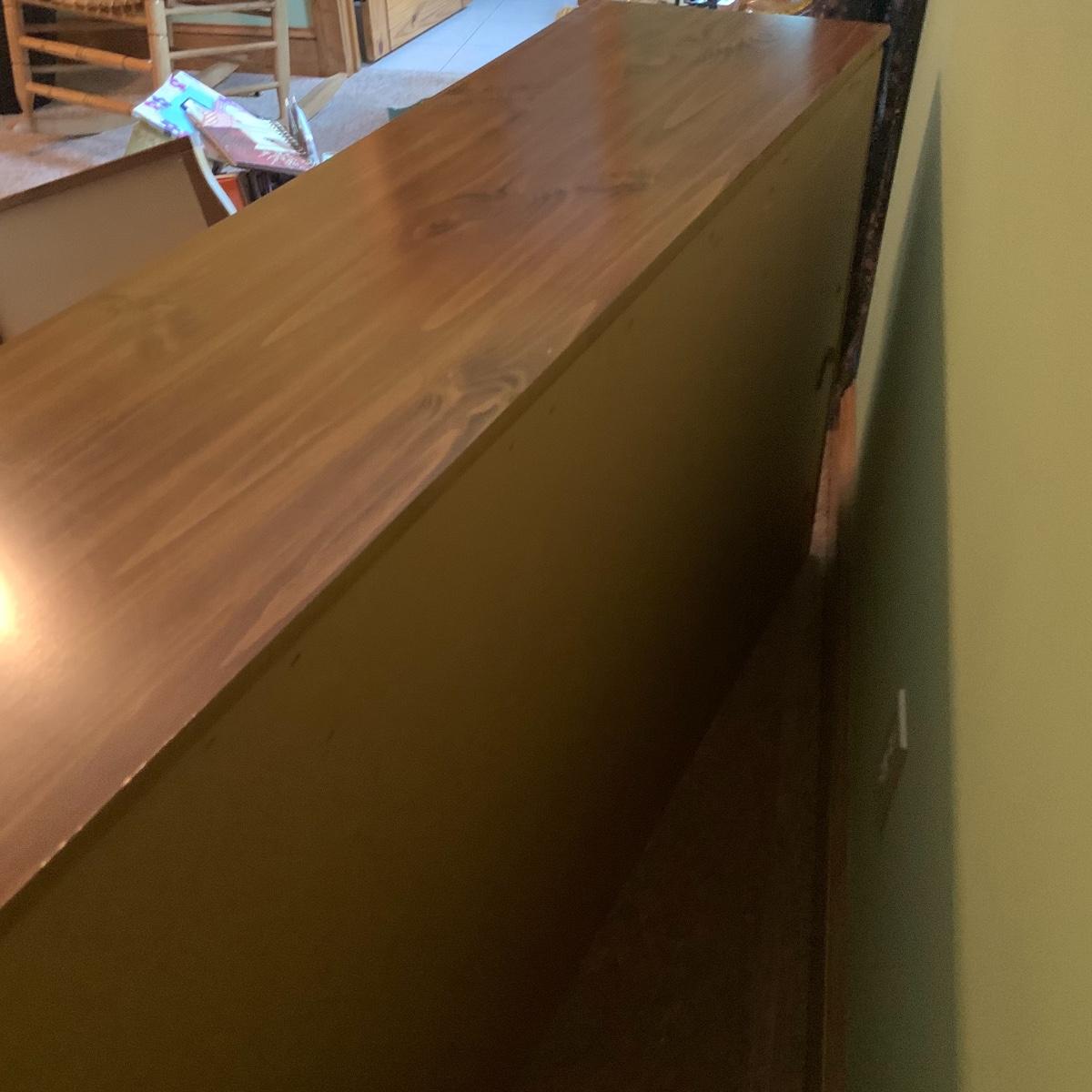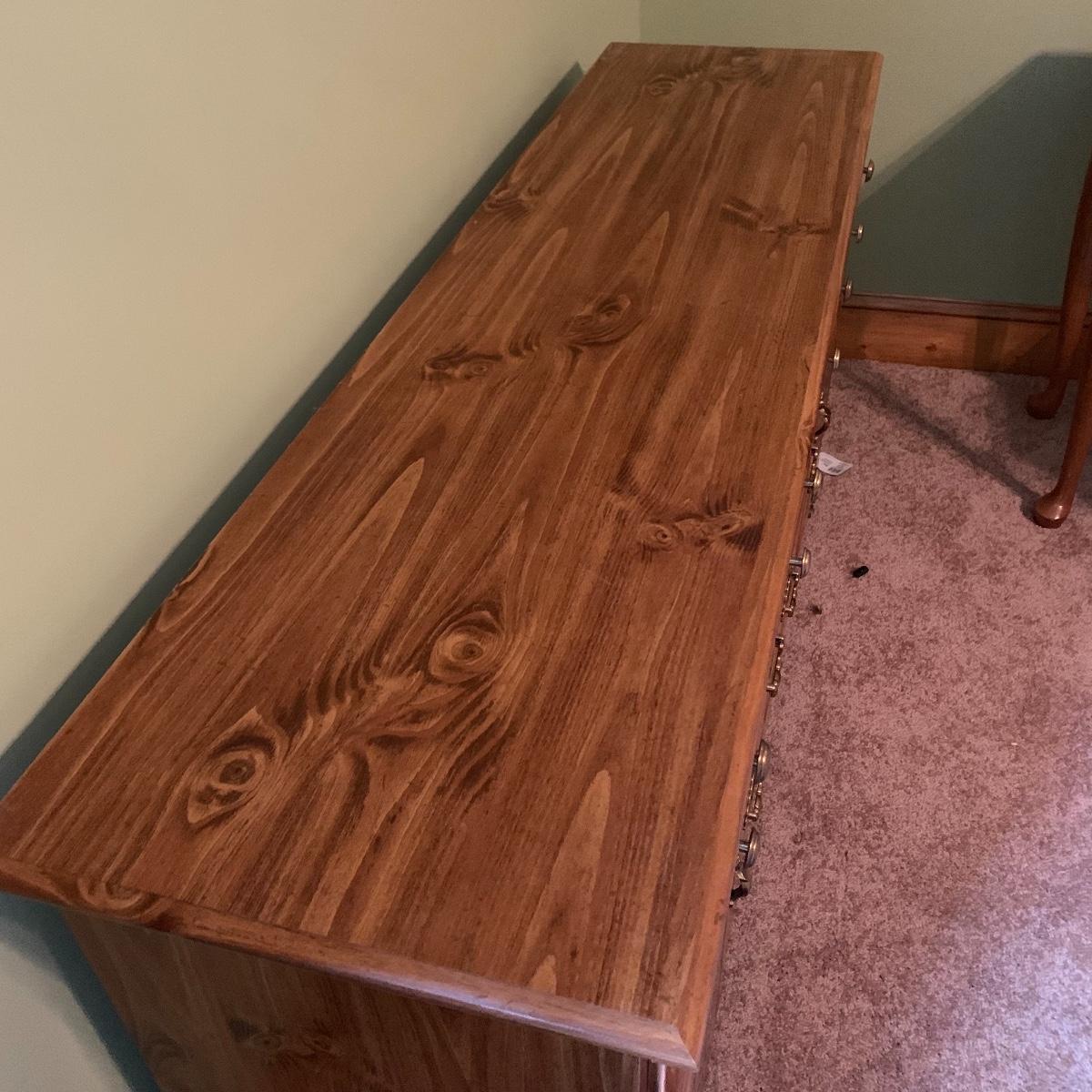 This lot offers great storage options. Included in this lot is a beautiful dresser that features shiny gold hardware and doors that have carved leaf designs. There are four drawers and ample storage behind each of the two doors. It measures 60” Wide X 16” Deep X 30” tall. Also offered is small side table that has one drawer. This item would make a nice vanity, writing desk or bedside table. It measures 28” Wide X 16” Deep X 30” Tall. It comes with a cute little stool as well. Local pickup only.