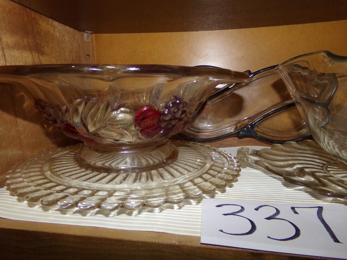 SOME REALLY NICE GLASSWARE. A COUPLE LARGE BOWLS AND PLATES.