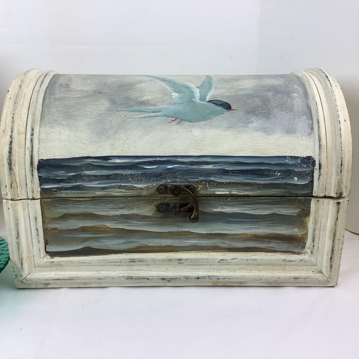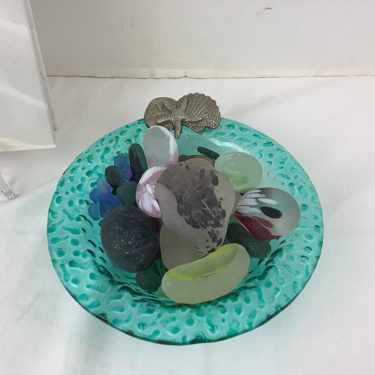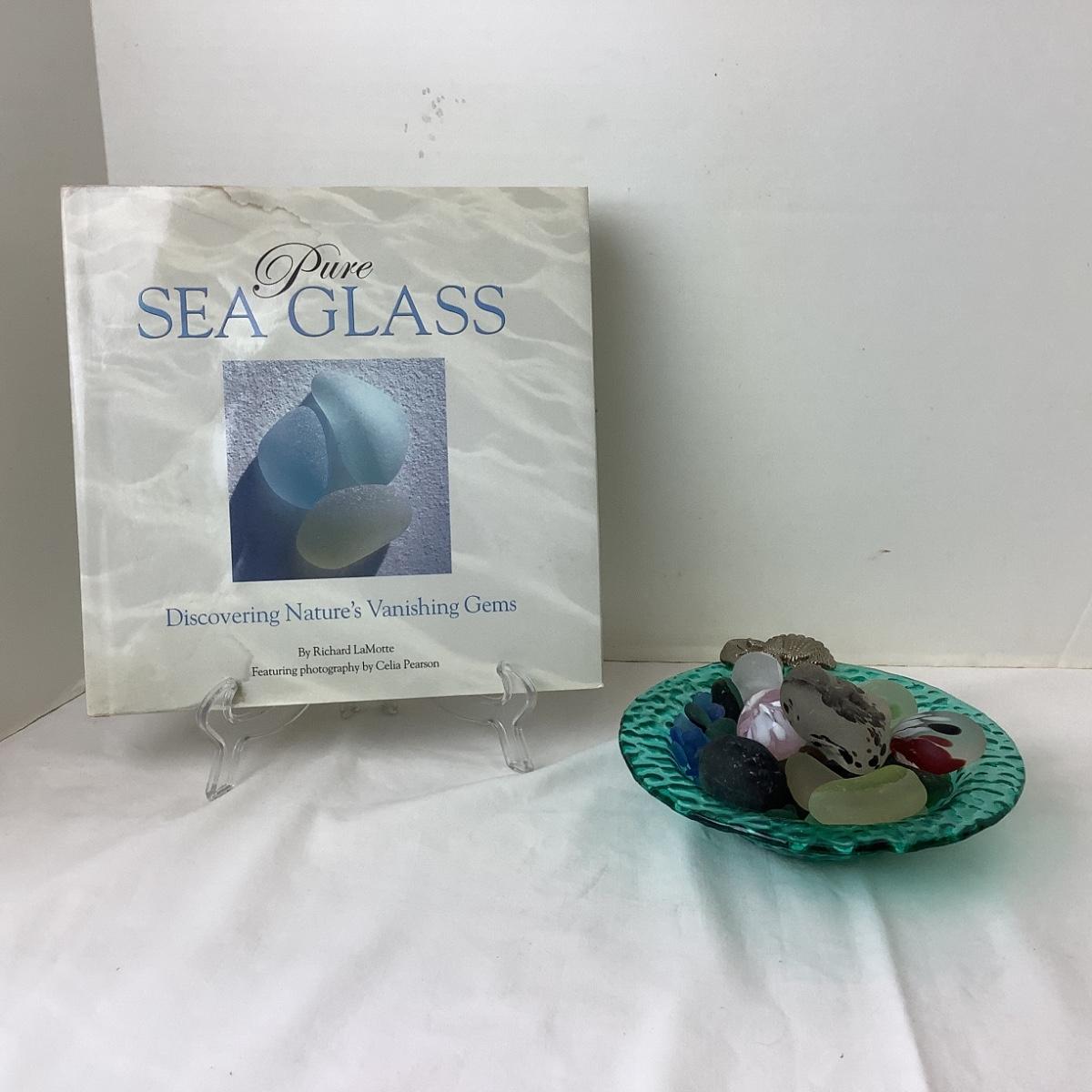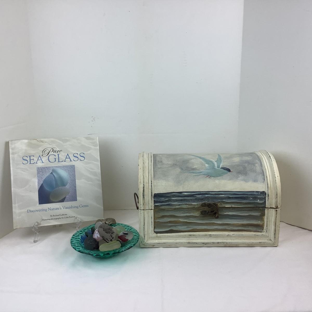 Lot 337 Hand Painted Trinket/Treasure Chest, Pure Sea Glass Book by Richard LaMotte, Bowl of Sea Glass