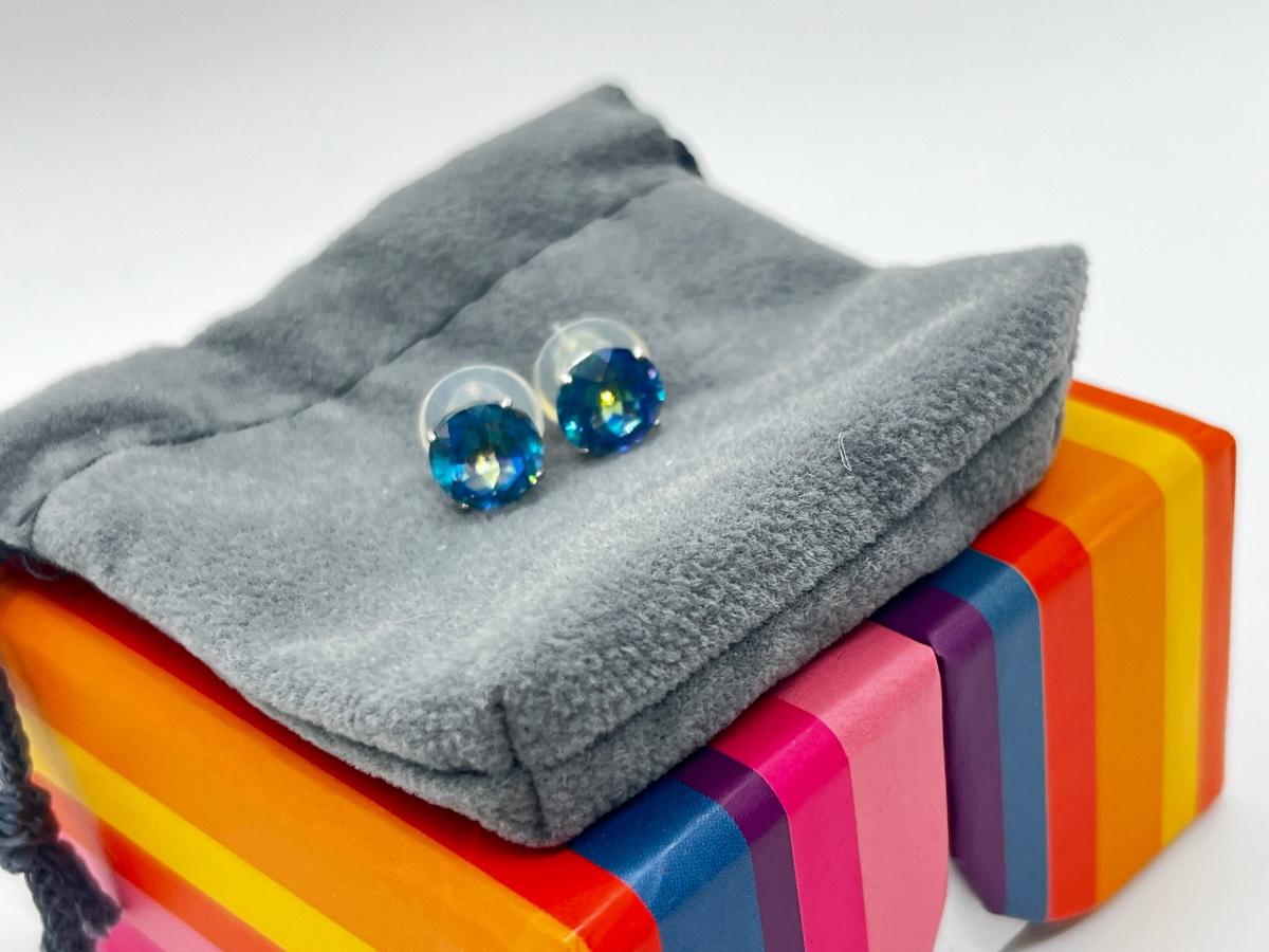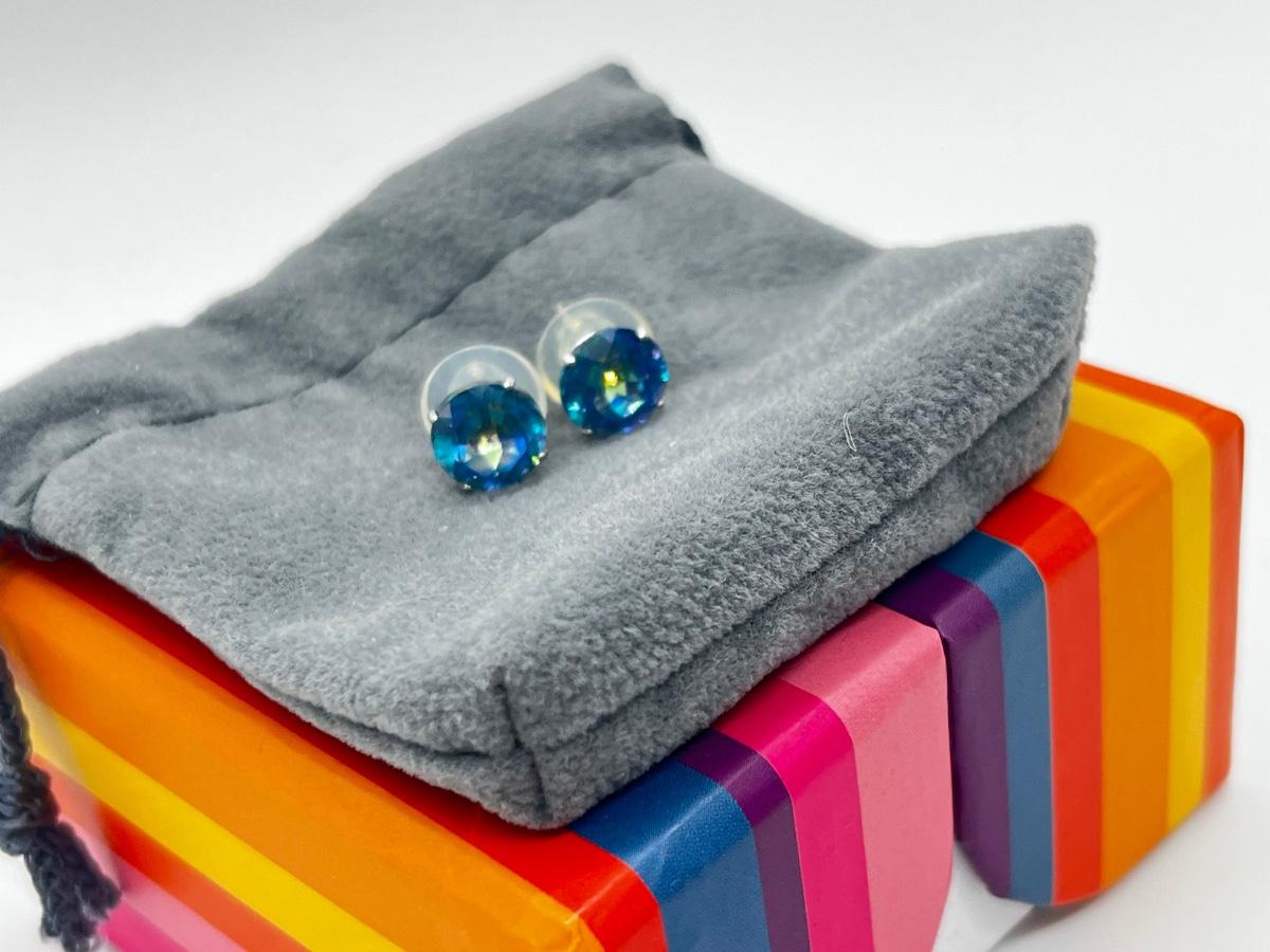 Lot 337J: New Mystic Topaz Round Pierced Post Earrings-14K-1.6 gtw