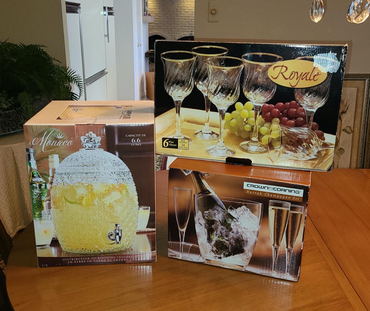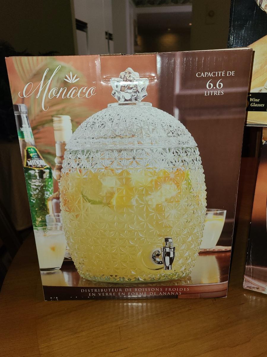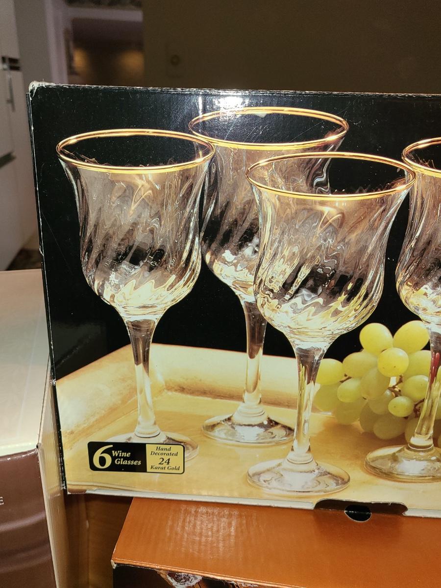 Lot 337: Wine Chill Set, Gold Rimmed Wine Glasses, & Pineapple Glass Beverage Dispenser