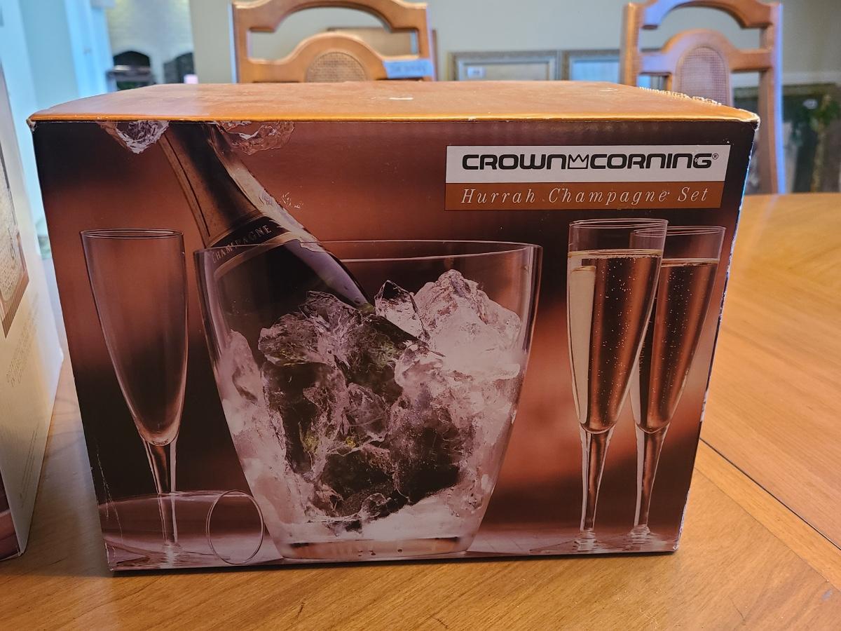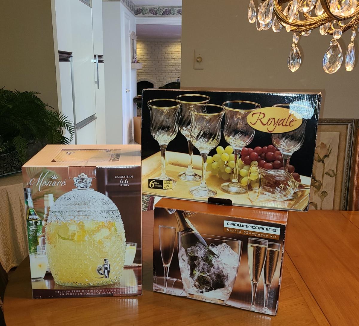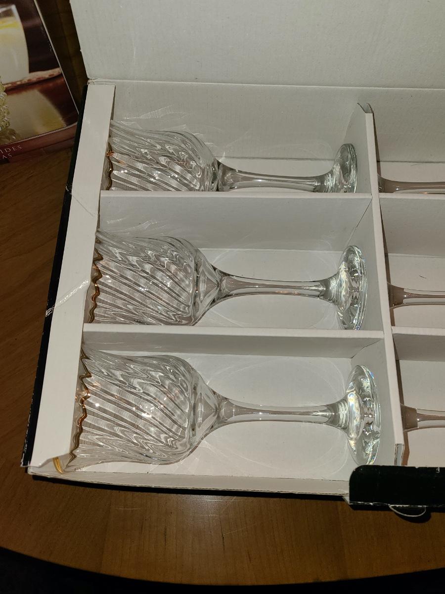 Lot 337: Wine Chill Set, Gold Rimmed Wine Glasses, & Pineapple Glass Beverage Dispenser