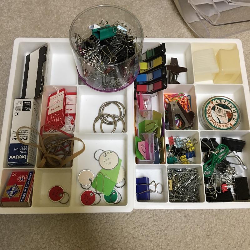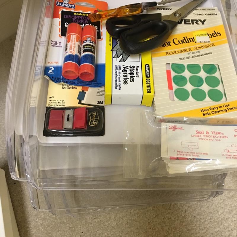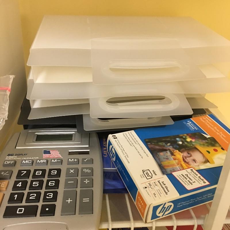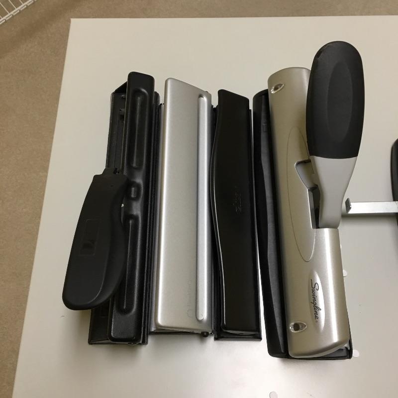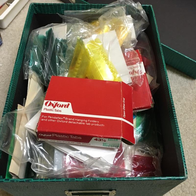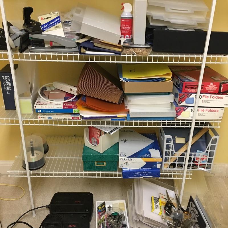 This large lot offers you oodles of office supplies including APC battery backups, Canon flatbed scanner, Tumi briefcase, scissors, hole punchers, stapler, hanging file folders in every color and much, much more, see images. One of the APC battery backups does not have battery.