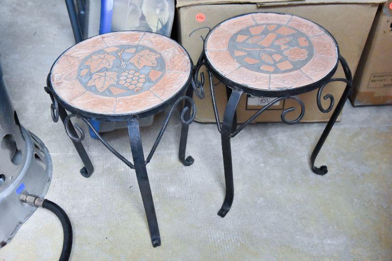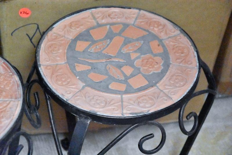 Lot 338: Pair of Terra Cotta and Iron Plant Stands