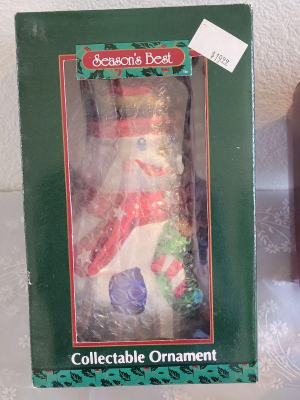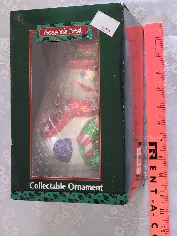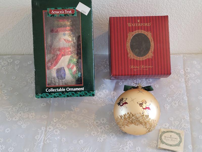 Lot 338: New Retired WATERFORD Holiday Heirlooms Large Glass Ball and Large Glass Snowman Ornament