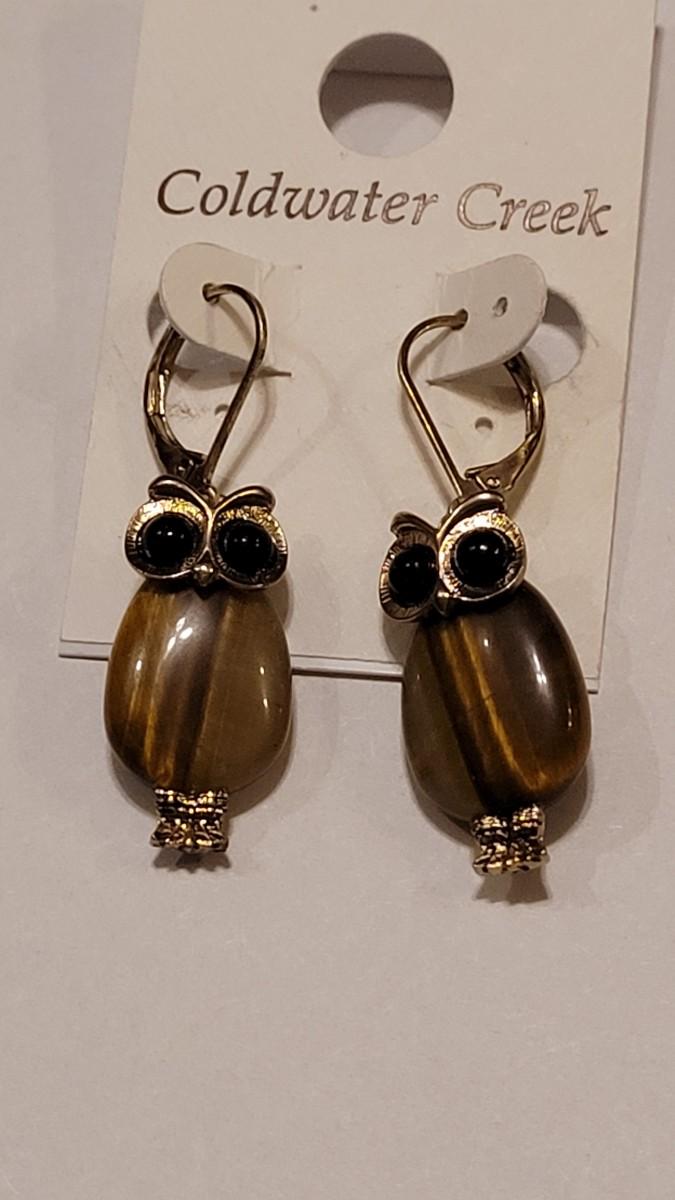 Lot 338: Coldwater Creek Stone Owl Earrings,  Yellow Glass and Stone Hoop Earrings