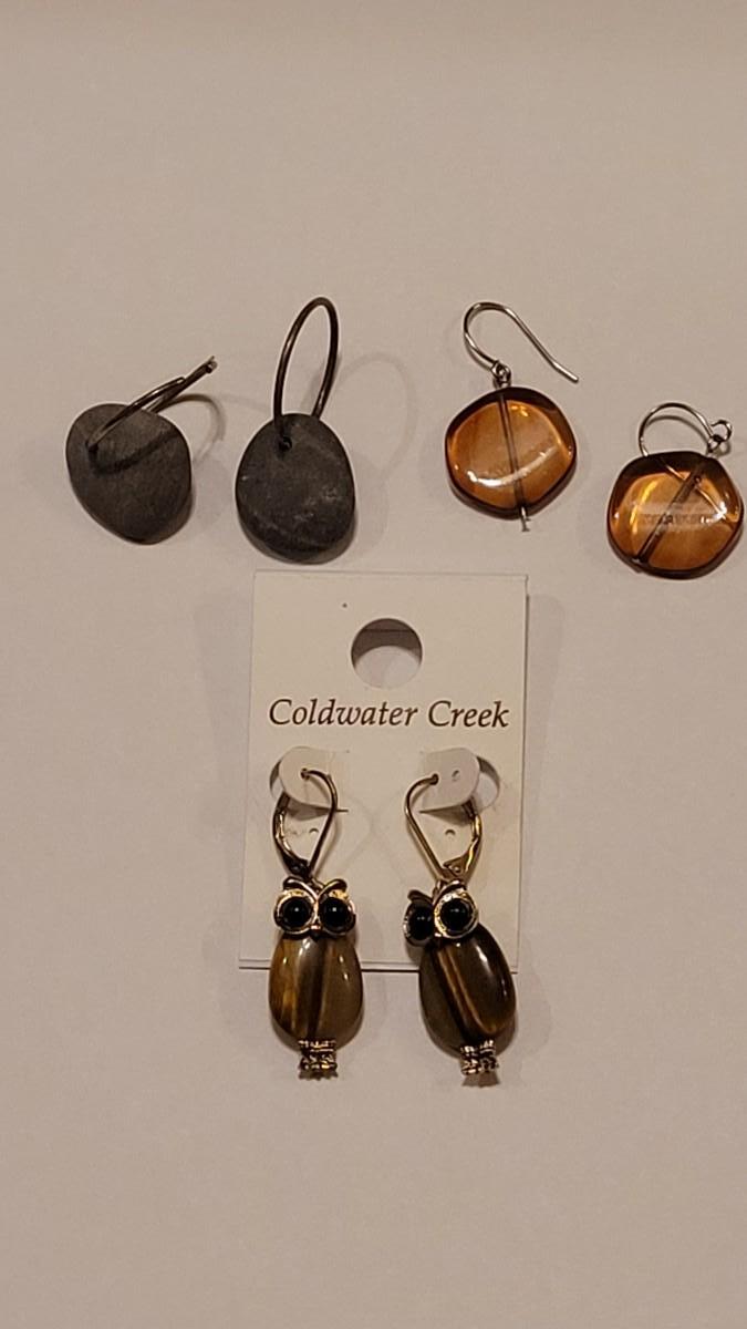 Lot 338: Coldwater Creek Stone Owl Earrings, Yellow Glass and Stone Hoop Earrings